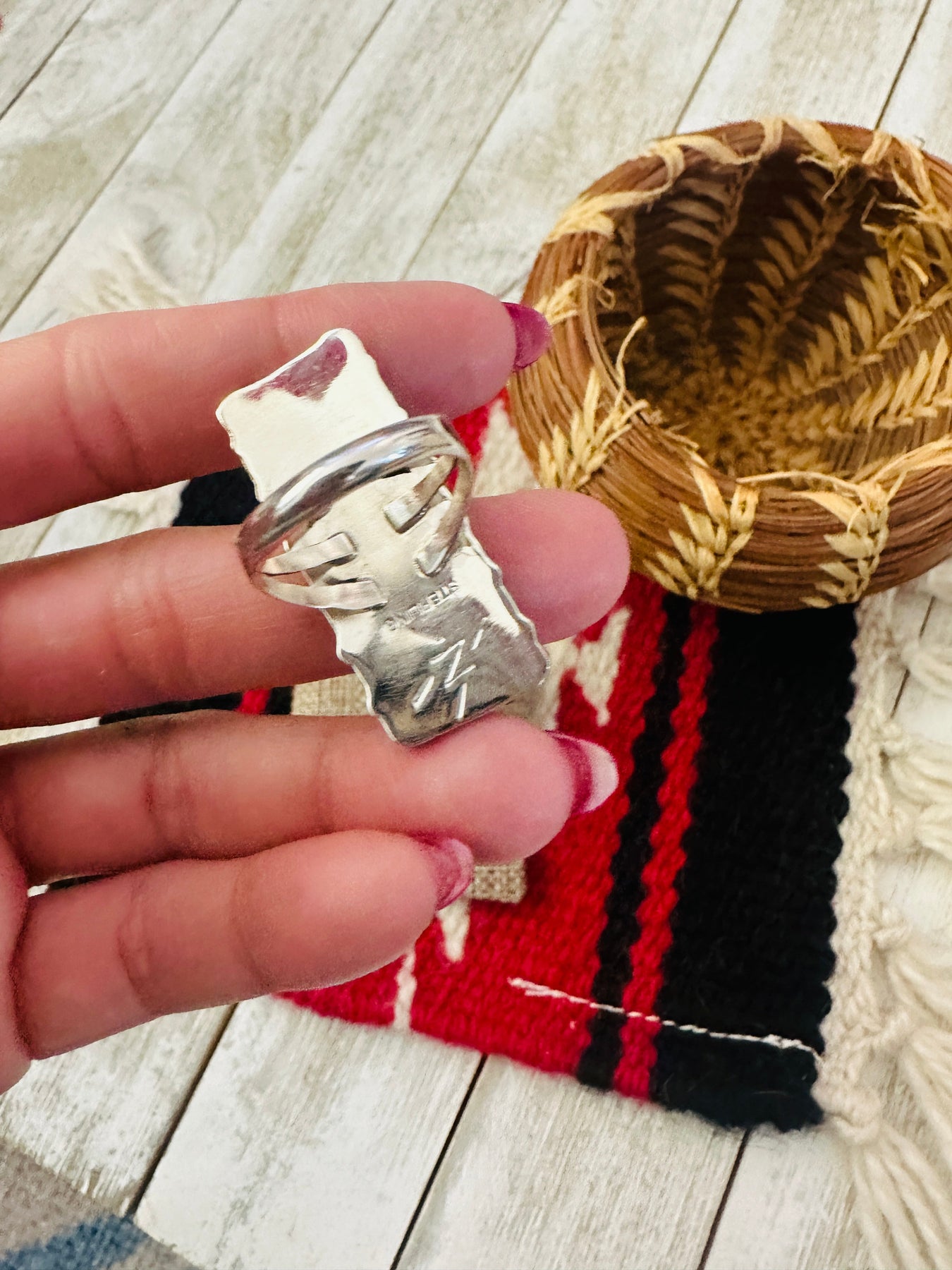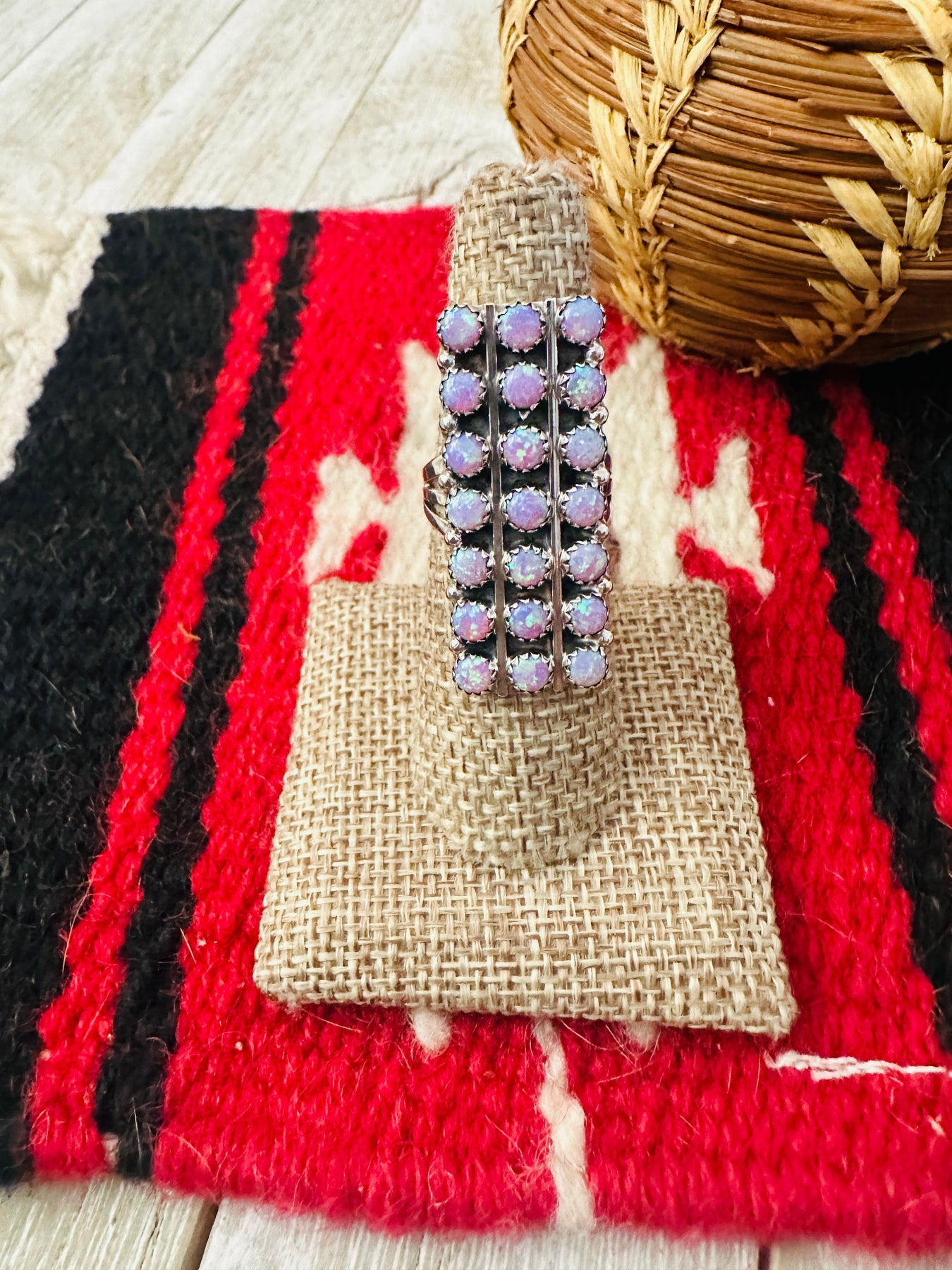 Beautiful Handcrafted Sterling Silver and Synthetic Purple Opal Cluster Ring. Measures. 1 3/8 inches long and 5/8 of an inch wide. Signed by the artist and stamped Sterling.