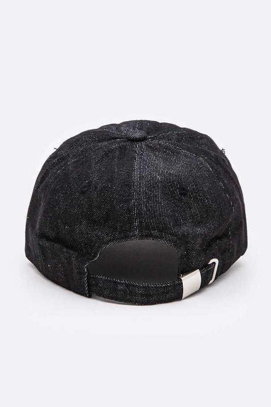 Saddle up with some sass in this Dust & Bloom Denim Hat — where grit meets grace. This black cotton cap’s got a whole lotta attitude with its rough-around-the-edges distressin’ and a soft pink rose patch sittin’ pretty up front. It’s the perfect combo of tough and tender, just like a true cowgirl. Adjustable back strap makes it a one-size-fits-most kinda deal, whether you're ridin’ fences or headin’ into town.