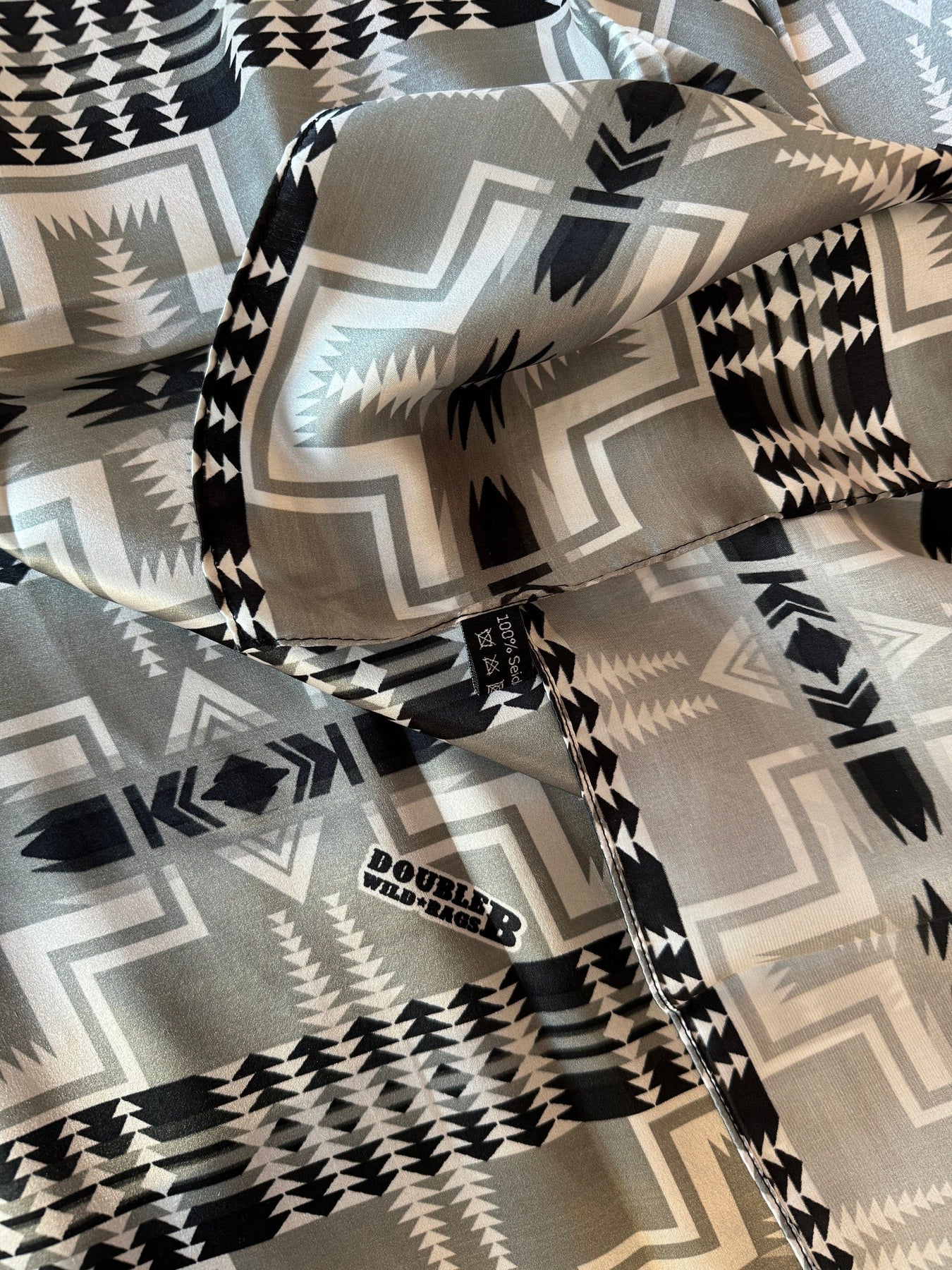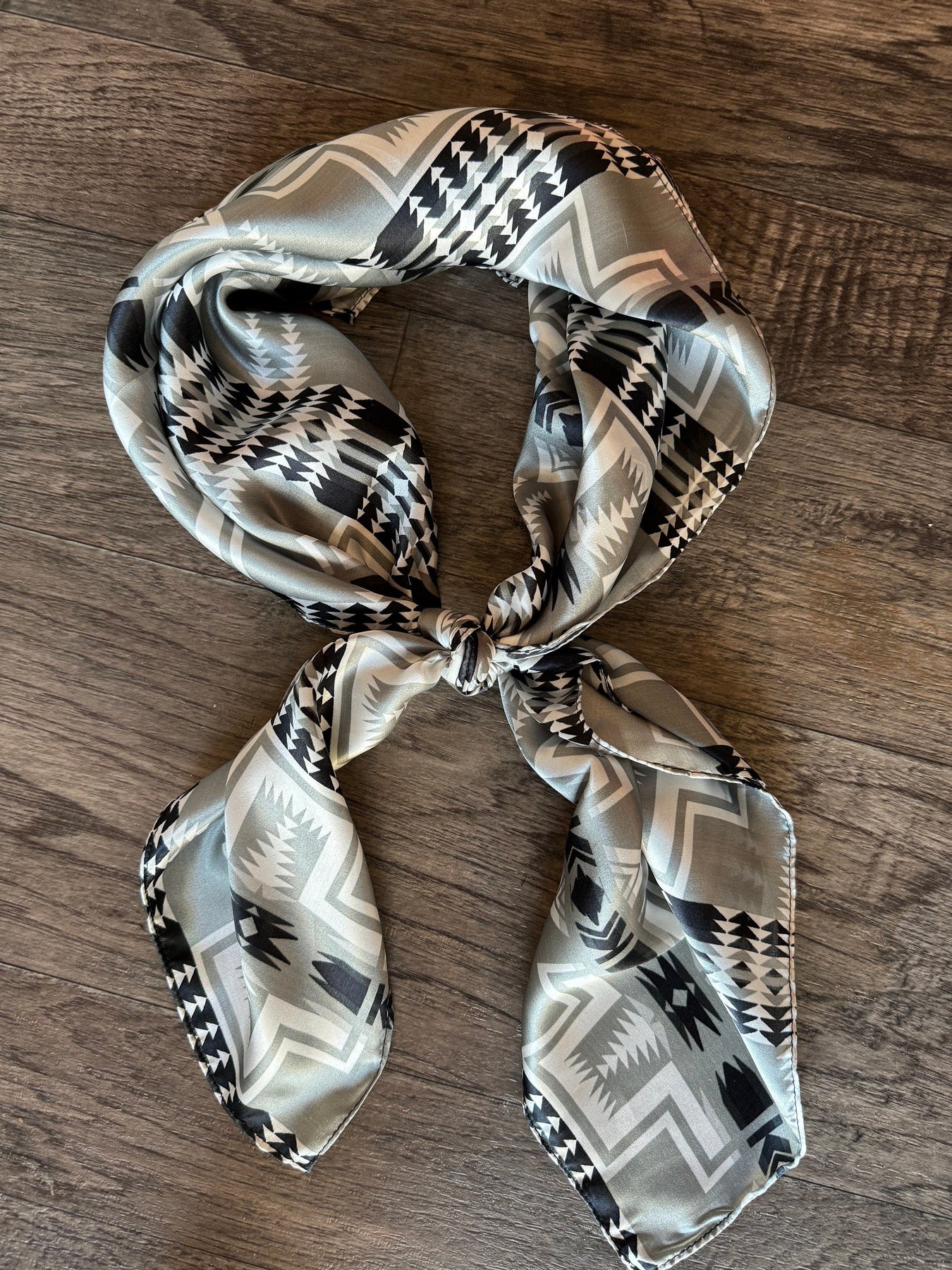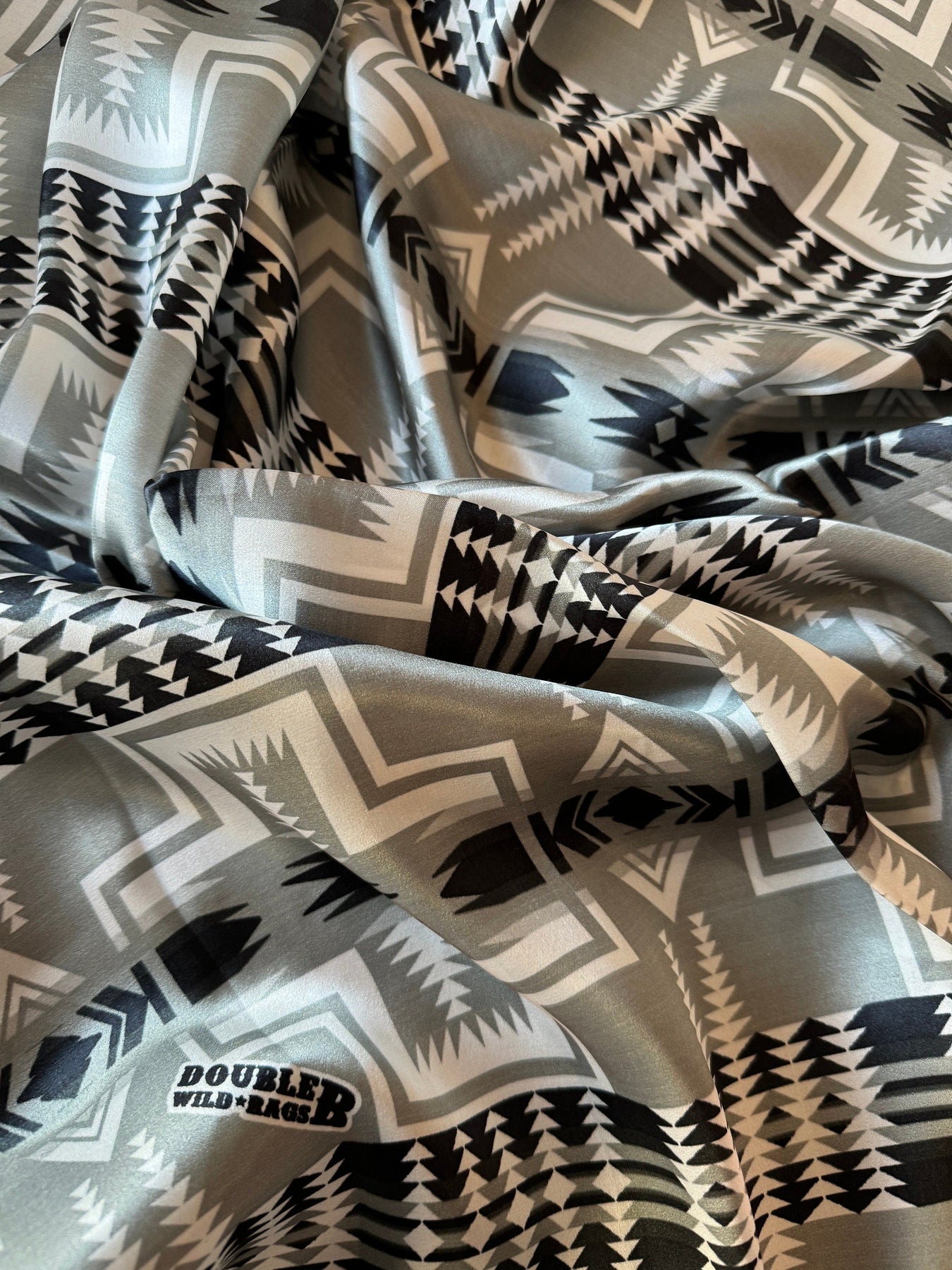 Silk Wild Rag -Black and Silver Navajo Native Print