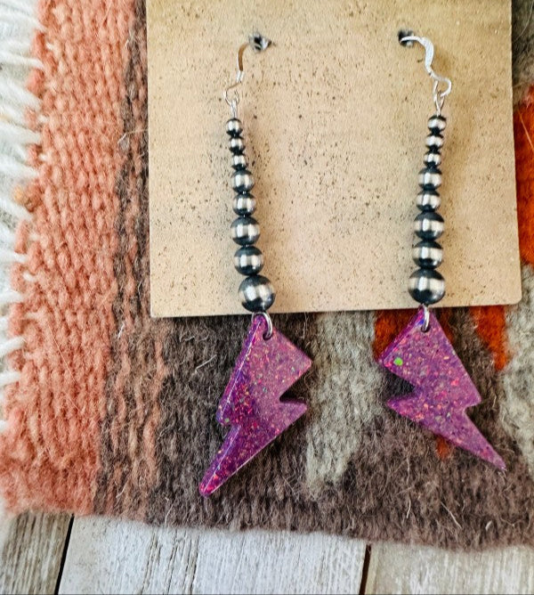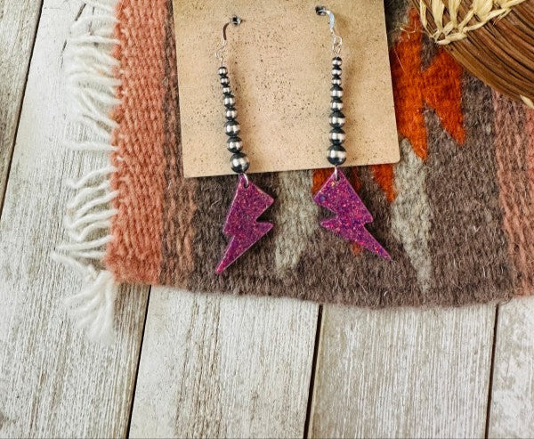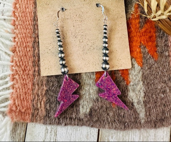 Strike a bold style statement with these handcrafted Navajo earrings featuring shimmering sterling silver pearls and vibrant pink opal lightning bolt drops. The unique combination of traditional Navajo silversmithing and modern, edgy design makes them a standout in any jewelry collection.