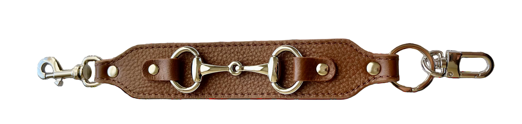 Silver bit on reverse side, featuring valet clip, keychain and snap.