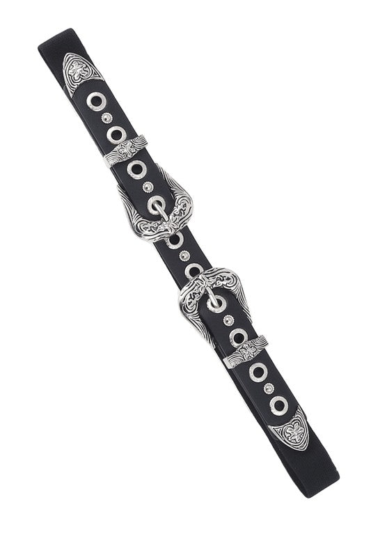 Saddle up your style with the Gold Rush Double Buckle Stretch Belt—a rootin’-tootin’ statement piece that’s all about bold Western flair. With its ornate filigree buckles, golden grommet details, and stretchy fit, this belt cinches like a charm and rides comfy all day long. It’s the perfect partner for high-rise denim, flowy dresses, or that fringed vest you’ve been itchin’ to wear.
