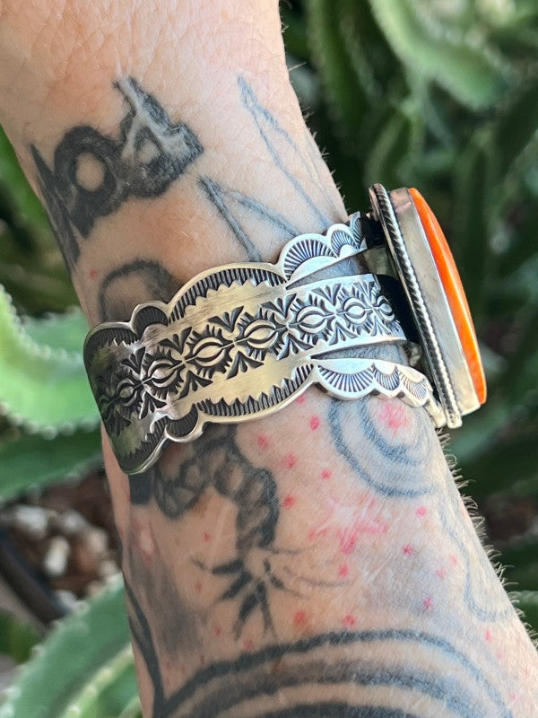 Navajo Sterling Silver Orange Spiny Oyster Heart Cuff Bracelet – by Murphy Platero