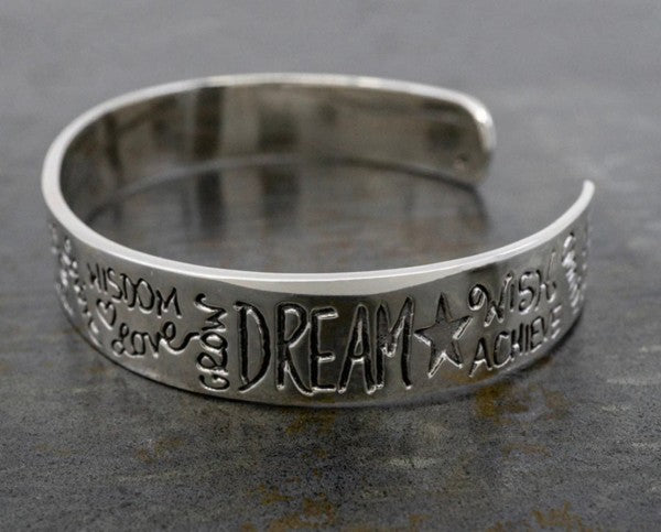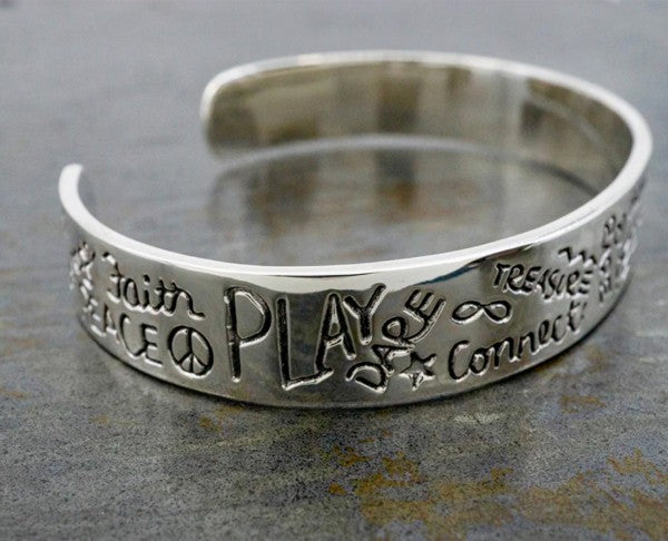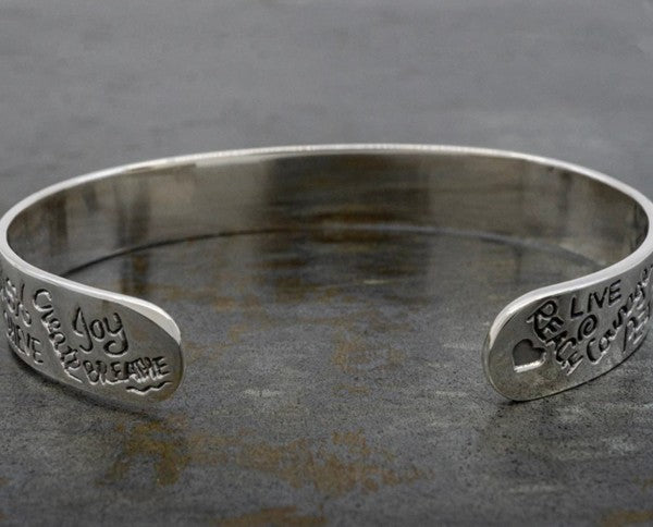 Stamped sterling, this meaningful cuff blends strength and beauty—making it a timeless piece you’ll cherish or proudly