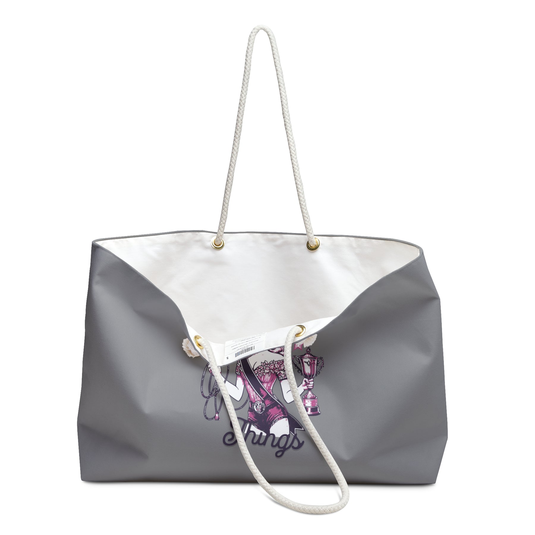 Crafted with a 100% spun polyester exterior, it’s built to handle whatever the weekend throws your way, while the cream sheeting interior lining keeps things clean and classy (balance is everything). The roomy 24" x 13" size and structured T-bottom mean no sagging—just easy packing and effortless style.