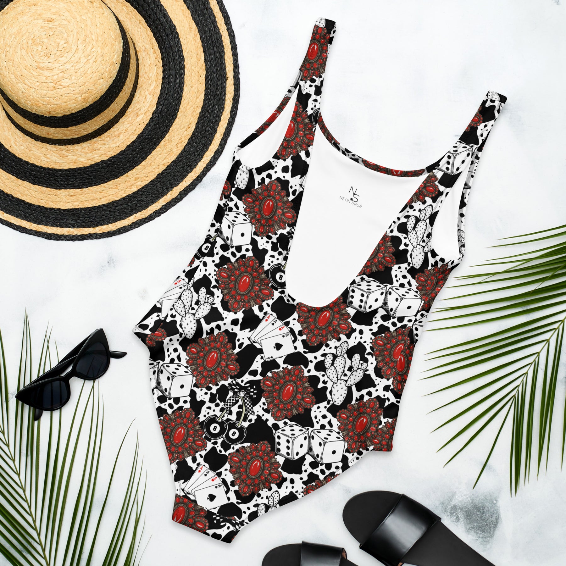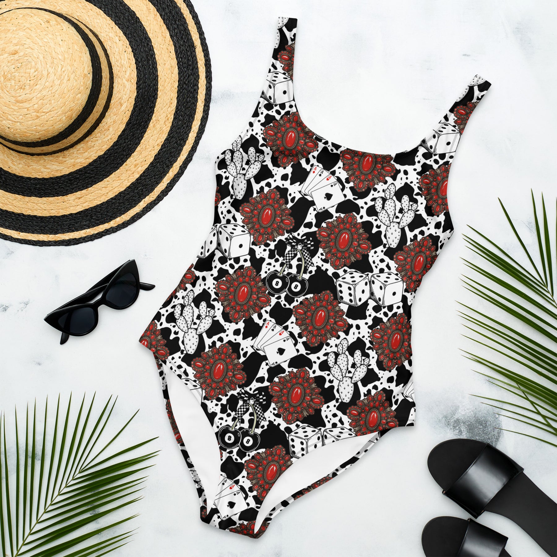 Red Turquoise Western Icon One-Piece Swimsuit