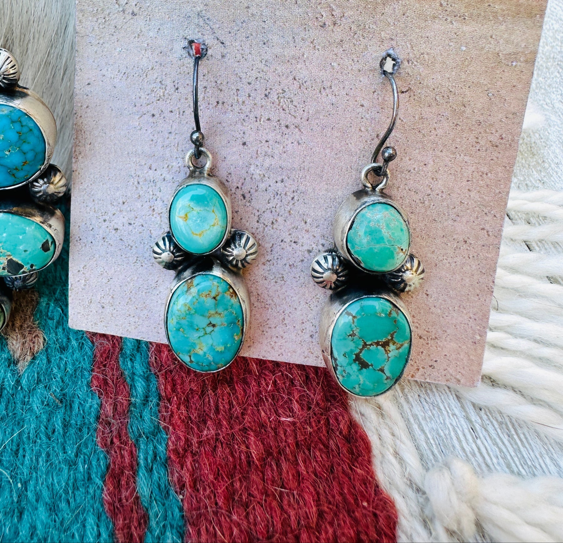 Handcrafted Turquoise & Sterling Silver Squash Blossom Necklace and Earring Set by Bobby Johnson