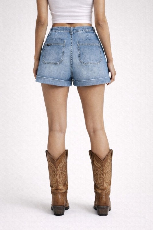 Upgrade your warm-weather wardrobe with these High-Waisted Denim Shorts, thoughtfully crafted in the USA. Designed with a flattering vintage-inspired fit, they feature a high-rise waist that hugs in all the right places, oversized front and back patch pockets, and a neatly cuffed hem for an effortlessly chic finish. The classic dark-wash denim makes them endlessly versatile—perfect with crop tops, tanks, or tucked-in blouses. From summer festivals to casual nights out, these shorts deliver all-day comfort, timeless style, and quality American craftsmanship.