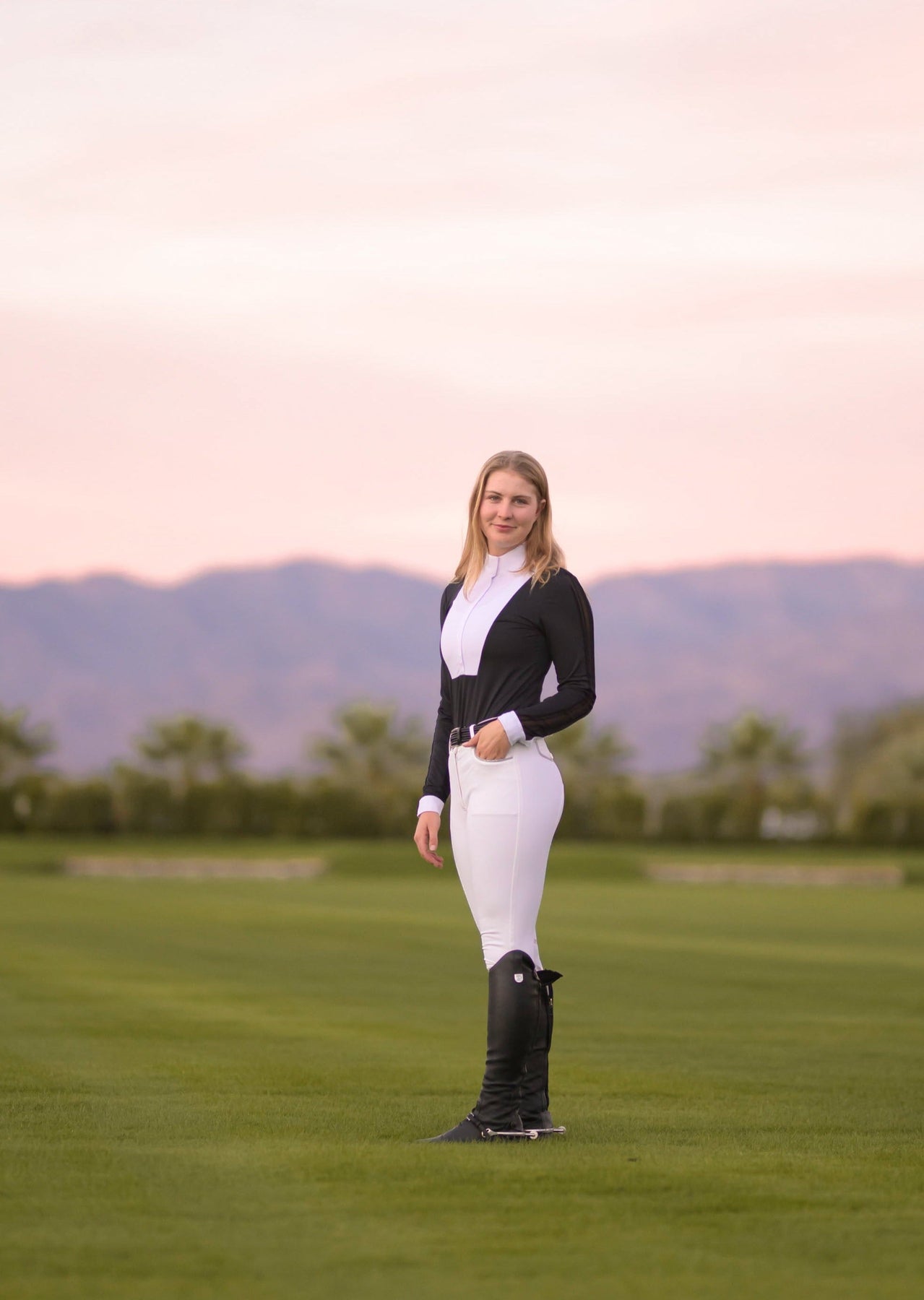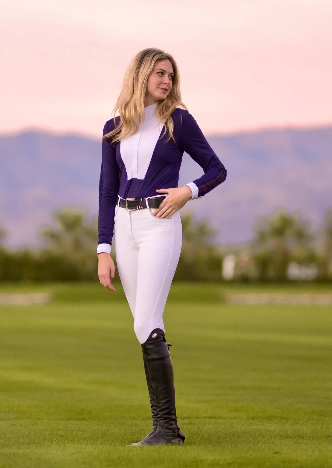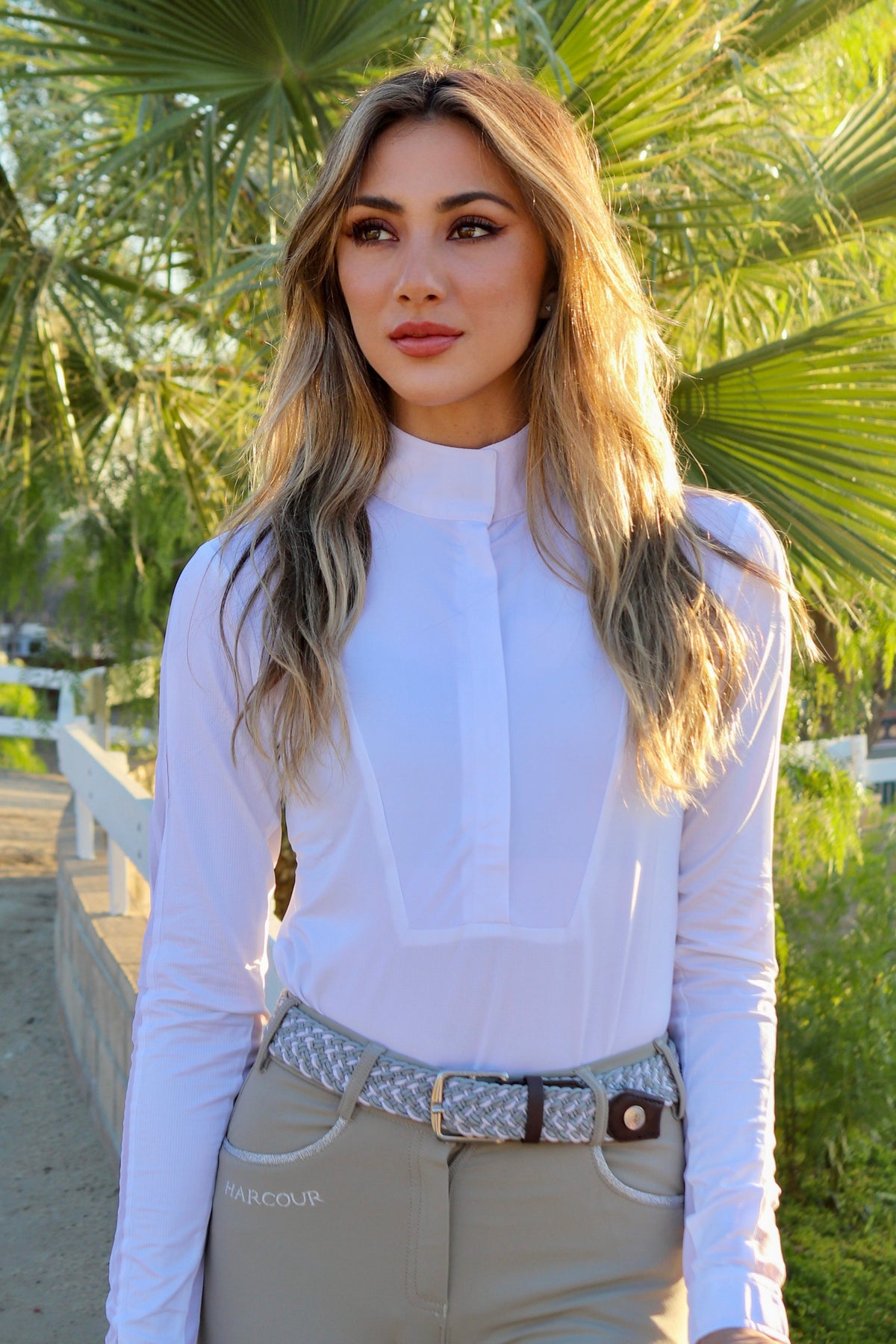 This women's long sleeve competition shirt is designed for Hunter, Equitation and Jumpers.  Designed by USA professionals for all 3 competition rings. Ultra-Light, stretchy fabric provides style and comfort for the athlete.