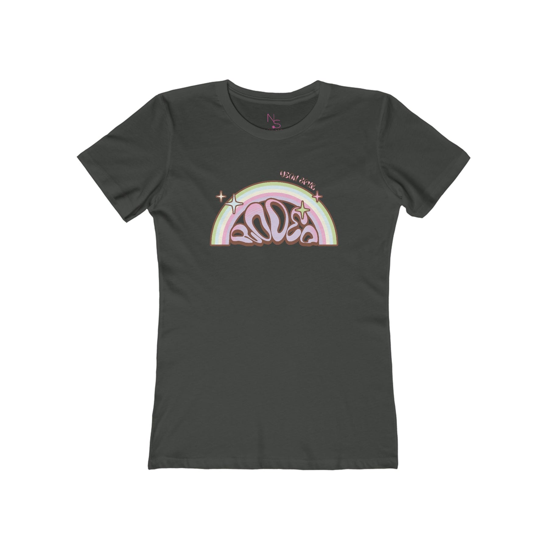 Giddy up, darlin', and take a stroll down memory lane with the Groovy Rainbow Rodeo Women's Boyfriend Tee—where retro rodeo vibes meet a modern-day cowgirl’s flair. With its groovy rainbow design and bold RODEO lettering, this tee is like a warm breeze from the past, blowin’ right into your wardrobe.