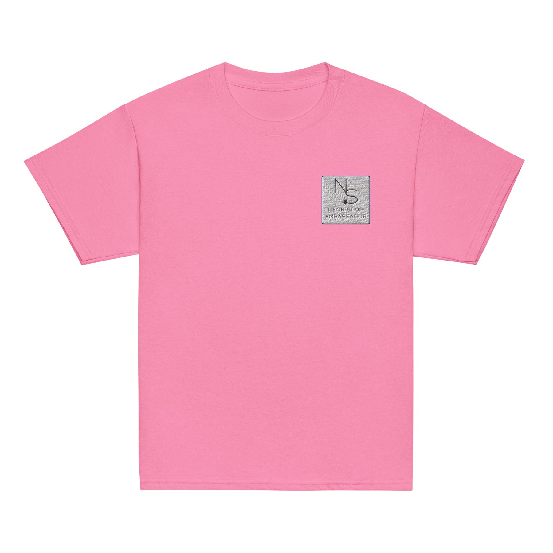 Get ready to giddy up in the Neon Spur Embroidered Brand Ambassador Youth Classic Tee. This here shirt is stitched with a genuine Neon Spur Brand Ambassador patch right on the front. Made from 100% cotton, it's as soft as a summer breeze and pre-shrunk to keep it from shrinking faster than a lizard in a desert sun. With a classic fit that’s perfect for every adventure, this tee is the real deal—tough enough for the rodeo and sharp enough for Sunday supper!
