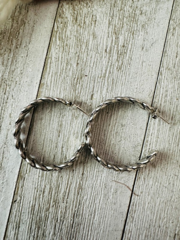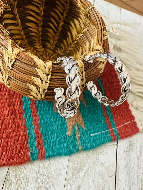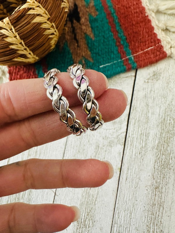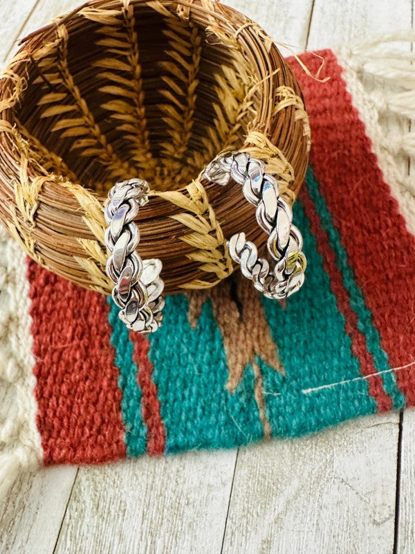 Beautiful Navajo Braided Sterling Silver hoop earrings. The beauties measure 1 1/8 inches long. Perfect earrings for any collection!