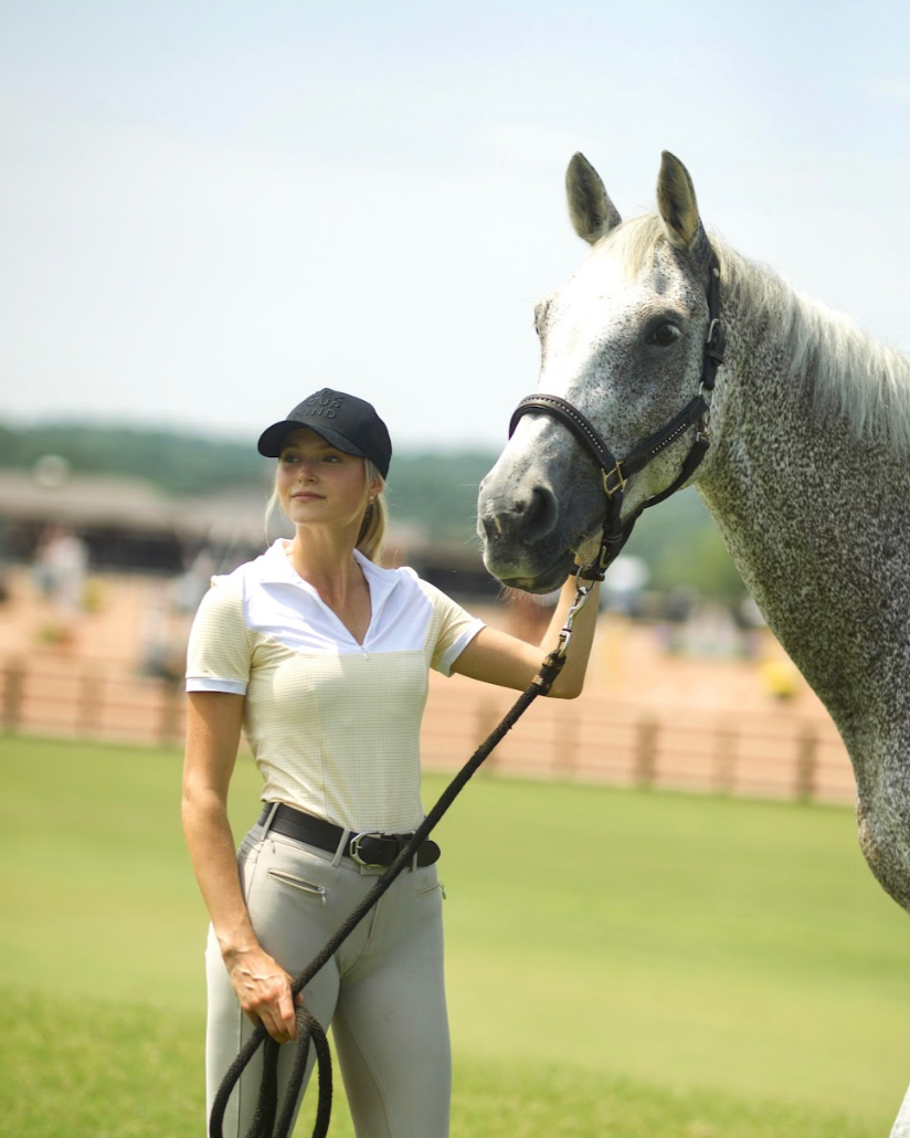 The Genevieve Shirt is perforated for perfection. This style is designed to provide aeration, muscle support and a form-flattering look. Genevieve has a white bib for appropriateness in all show rings. The minimal embroidery on the back finishes off the look with style.