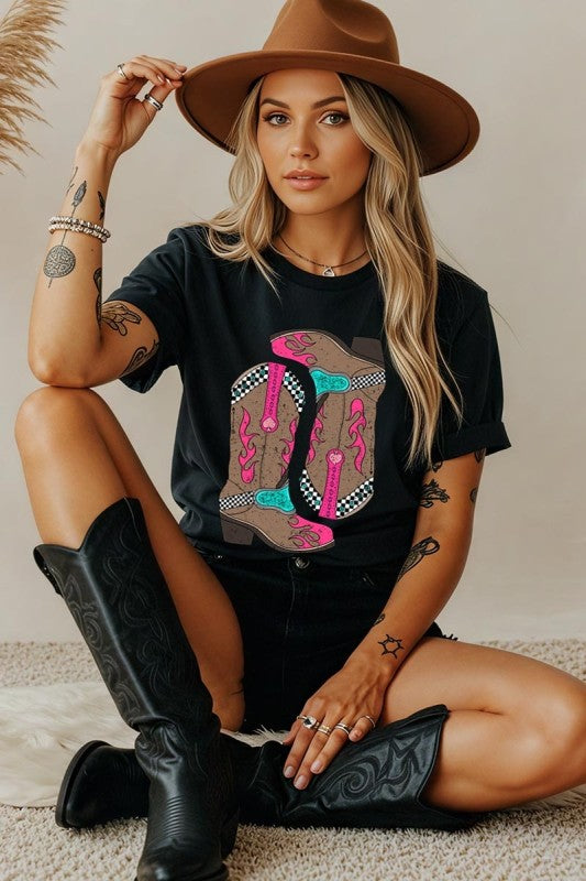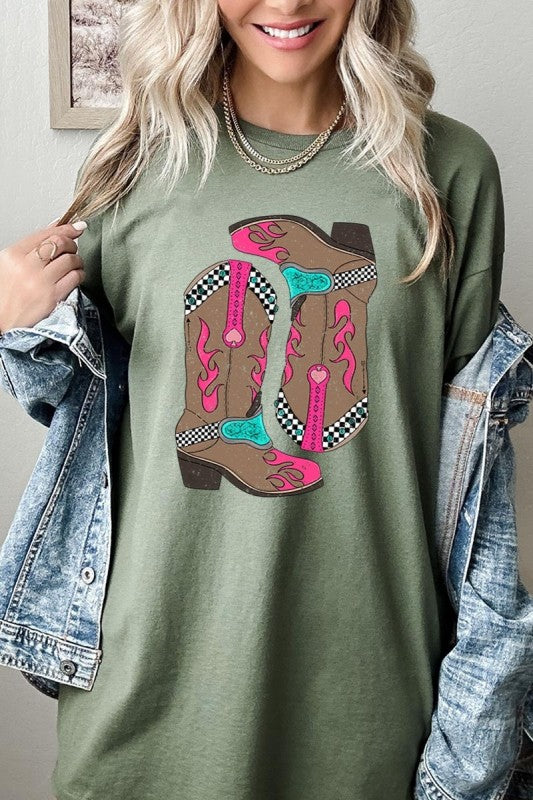 Western Cowgirl Boots Graphic Heavy Cotton Tee