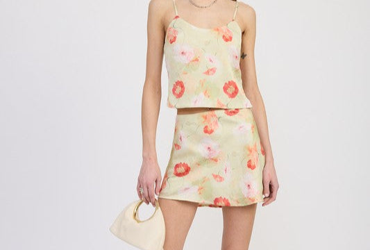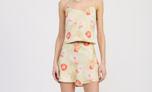 Let your outfit do the flirting in this dreamy Floral Bias Cut Mini Satin Skirt. Cut on the bias for that swoon-worthy slip effect, it hugs just right and glides with every step. The silky satin catches the light while a soft, vintage-inspired floral print adds a touch of garden-party glam. Whether you're brunch-bound or moonlit-dancing, this mini turns heads with ease. Fully lined for a smooth fit, it’s the kind of piece that feels as good as it looks.