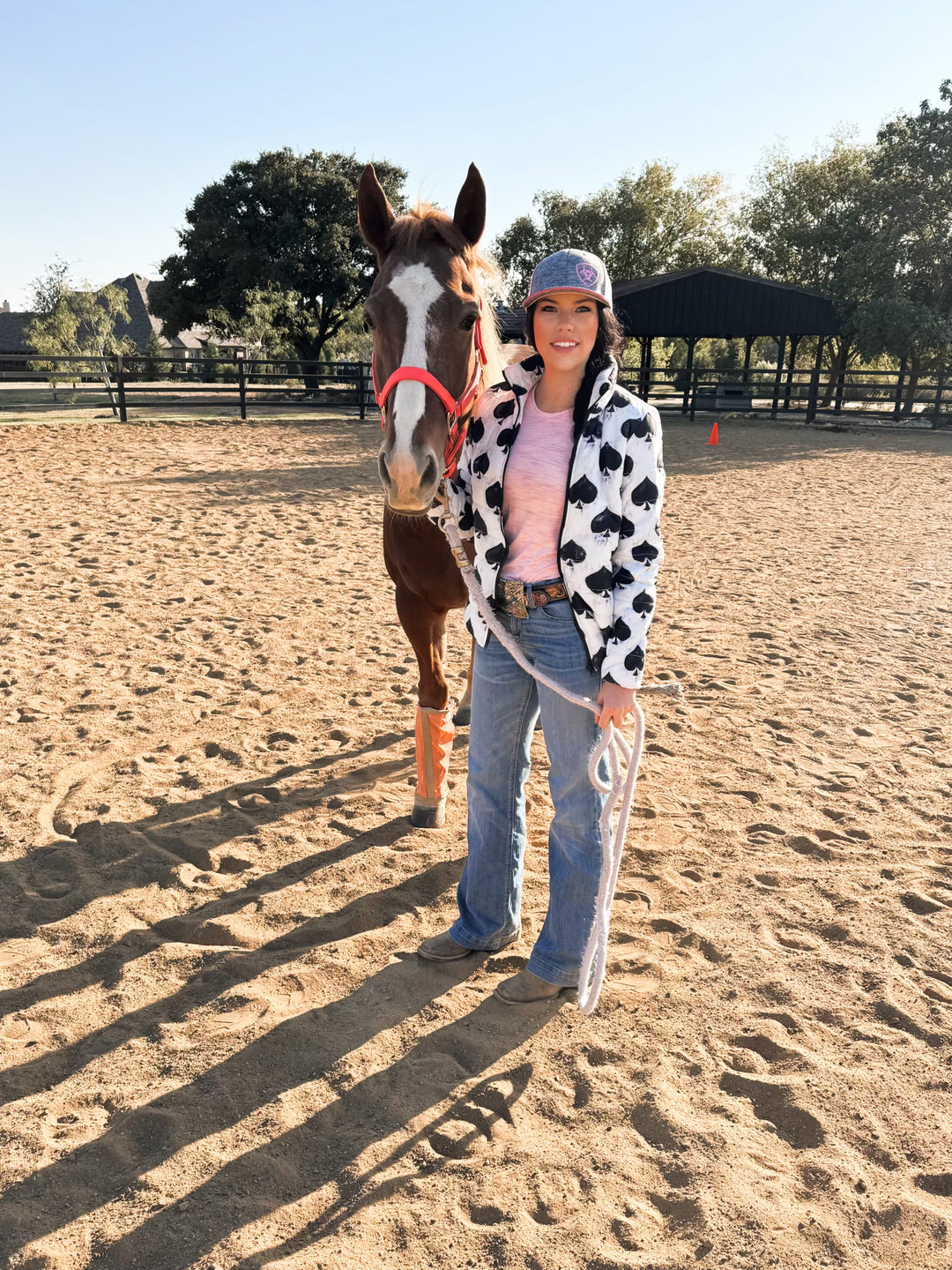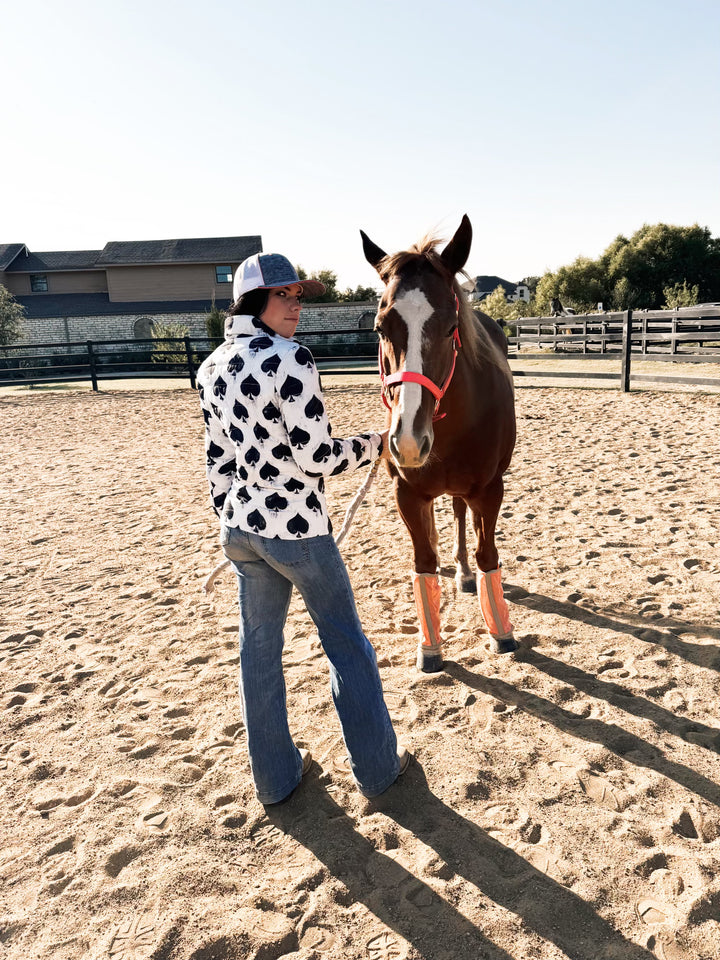 At Neon Spur, we pride ourselves on perfect tailoring — every rodeo shirt is designed with a slim, feminine fit that flatters your figure without the bulk. The contoured shape not only looks polished but helps prevent extra fabric from bunching or catching on your saddle horn. It’s a fit made for movement.