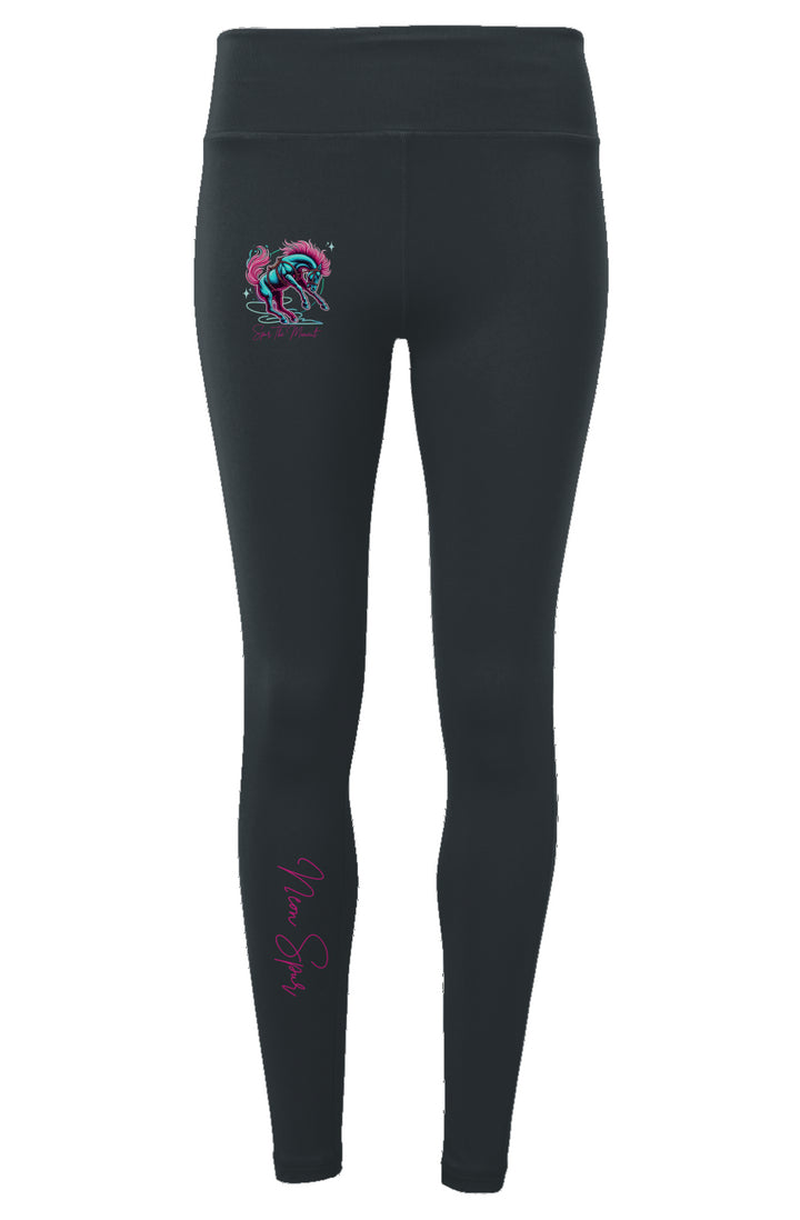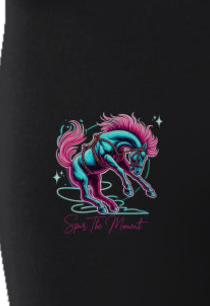 The Spur The Moment Performance Leggings bring Western flair to high-performance wear! With the bold Spur The Moment graphic on the hip and a sleek Neon Spur logo along the lower leg, these leggings are perfect for any active cowgirl or cowboy. Crafted from a flexible, breathable fabric, they provide comfort and stretch for every move—whether riding, running, or lounging. These leggings are designed to keep up with the day’s adventures while adding a dash of Neon Spur style to every step!