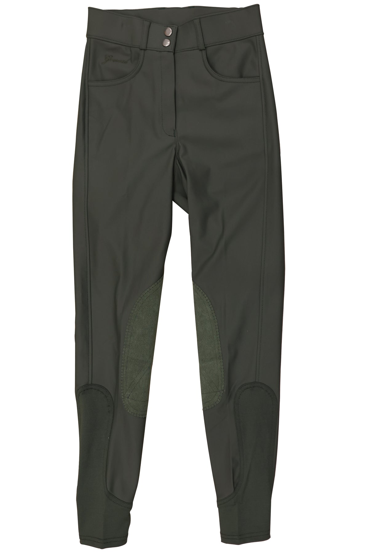 The Bianca Breeches with Clarino Knee Patch by Grewal Equestrian are the perfect everyday riding and schooling breeches in great colors to make striking outfits for your day at the barn. Why not look fashionable while feeling comfortable? The fabric has just the right amount of stretch with a smooth, soft feel that has quick absorption and is fast drying. These Bianca Knee Patch Breeches have relaxed jean pocket style deep front pockets with a mid-rise waist. The knee patch is reinforced with synthetic suede for security in the saddle. There are 2" belt loops with two hook snaps for your convenience. Both the Grewal Logo and YKK zippers are the same color as the breeches.