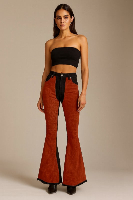 Burnt Orange Suede Chap Panel Bell Bottom Jeans
