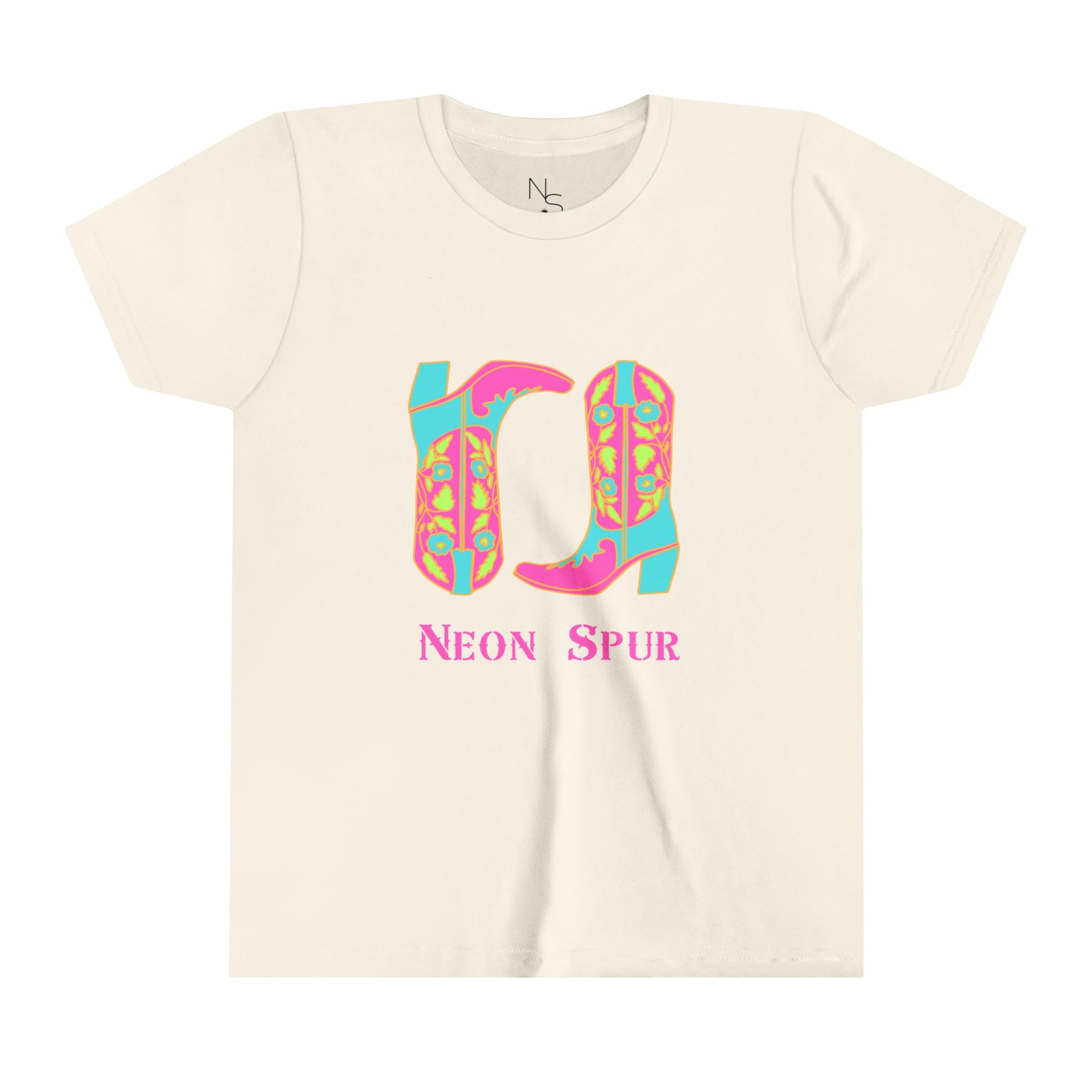 Yeehaw! Your little buckaroo is gonna be the sharpest shooter in the West with this Neon Boots Youth Short Sleeve Tee! This here shirt’s got a bright and bold graphic of cowgirl boots front and center, perfect for any young cowpoke lookin’ to kick up some dust. It’s made from super lightweight, airlume-combed, ring-spun cotton, so it’s softer than a prairie breeze and comfy enough for all-day ridin’ and ropin’. Giddy Up!