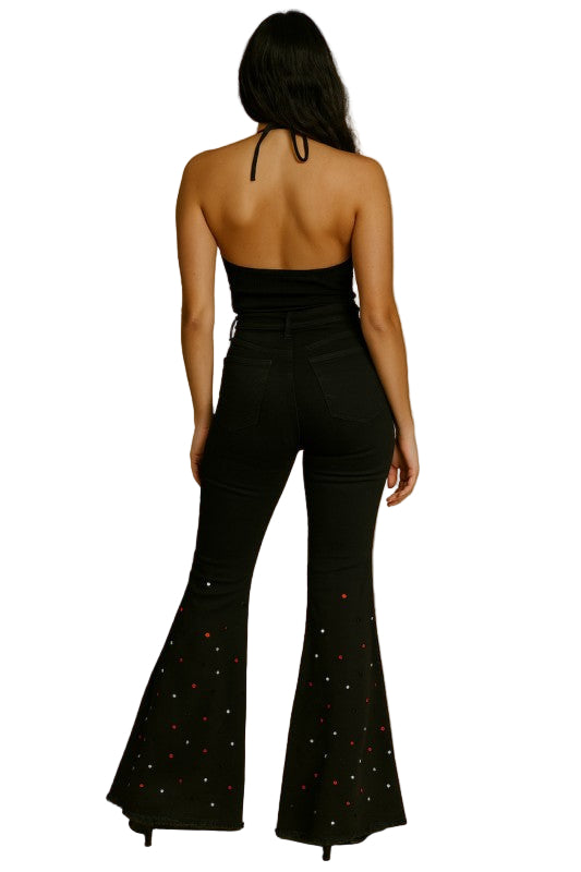 Halloween Rhinestones Midnight Bell Bottom Jean
