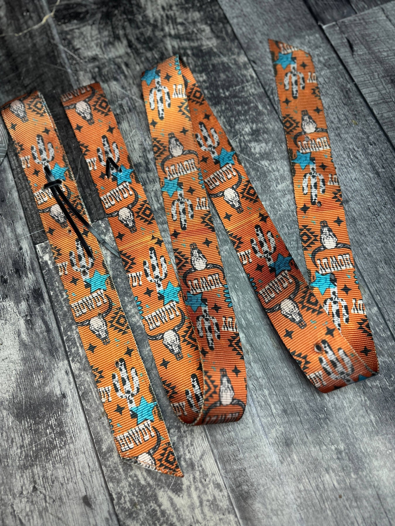 Saddle up with a little extra swagger—the Howdy Nylon Latigo & Off Billet Set brings the grit and the glam. With a bold burnt orange Howdy pattern printed all over, this set ain’t just built tough—it’s got that punchy Western flair that stands out in any rig.