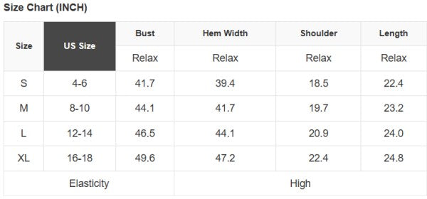See size chart for approximate measurements.