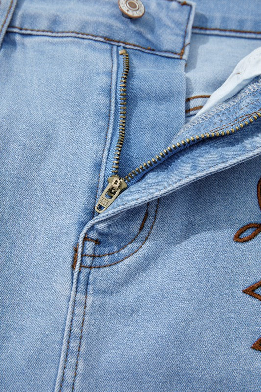 This skirt combines durable denim construction with intricate Western-inspired embroidery for a stylish and long-lasting wardrobe staple. Its length pairs effortlessly with boots, making it an excellent choice for casual wear, festivals, and streetwear looks. Designed for both trend and resilience, this skirt delivers a distinctive edge while maintaining comfort and versatility. Cotton/Polyester/Spandex