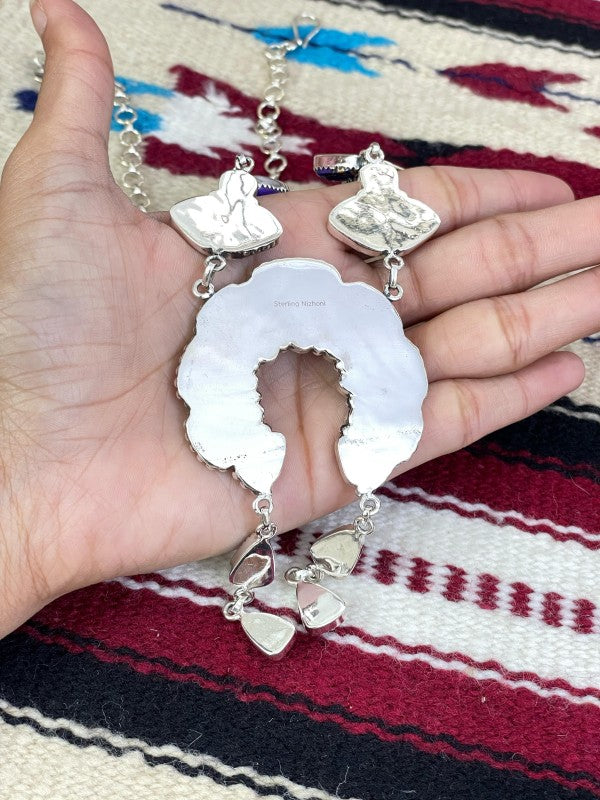 Such gorgeous craftsmanship! Sterling chain measures 22 inches long and width 2 inches with an additional drop of 3 5/8 inches.