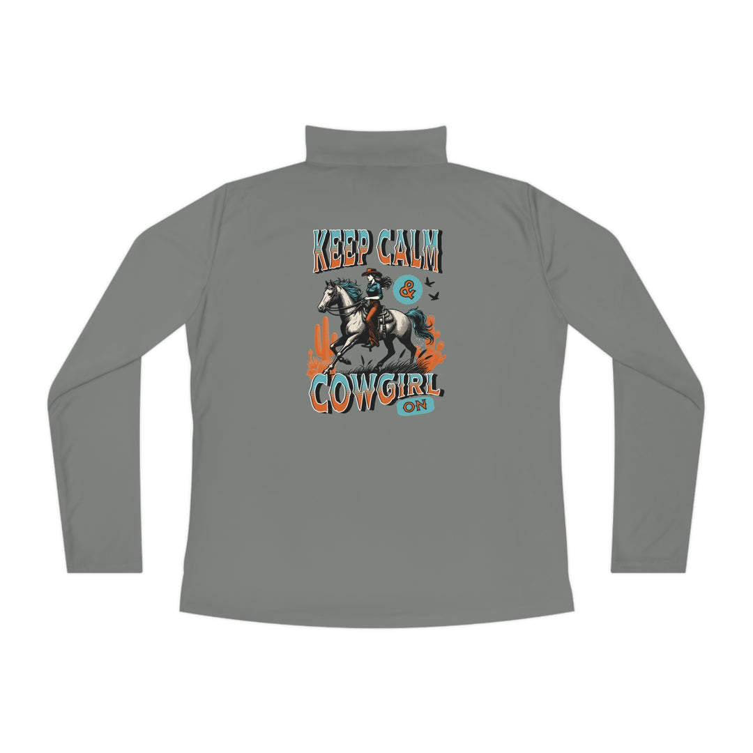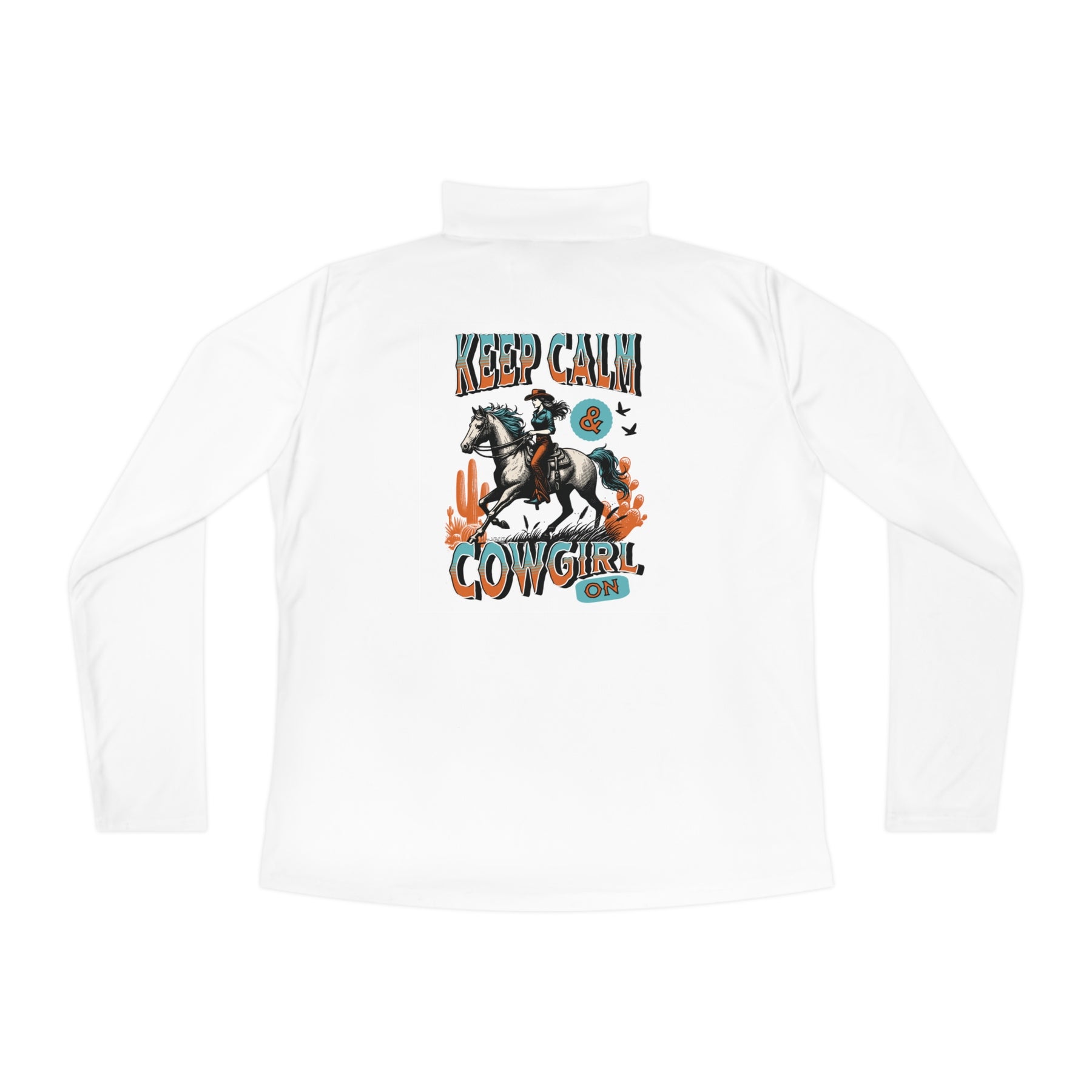 Keep Calm & Cowgirl On Ladies Quarter-Zip Pullover