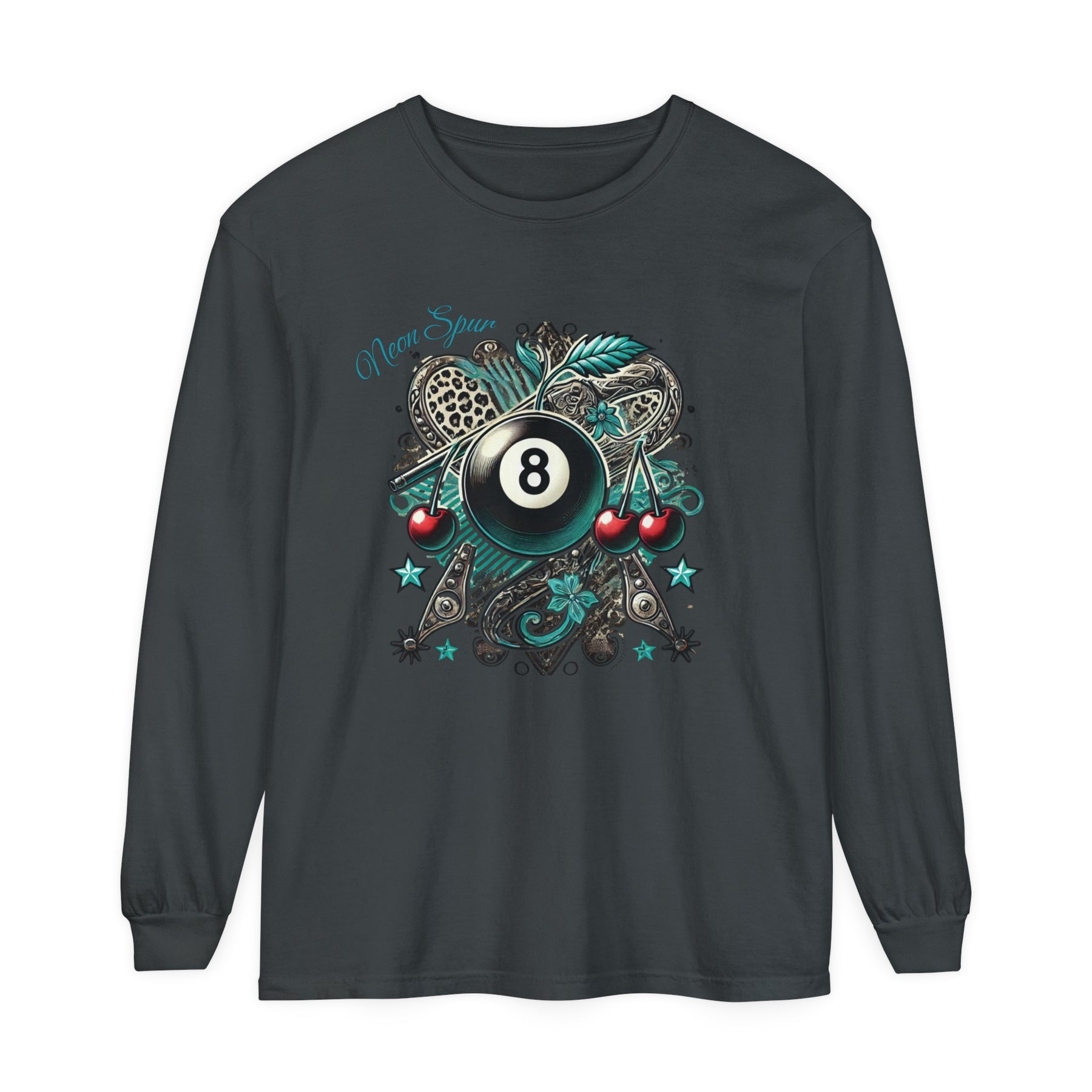 The Lucky 8 Long Sleeve is where Western grit meets bold style! Featuring an eye-catching 8-ball graphic accented with spurs, vibrant cherries, and a hint of cheetah print, this shirt is all about bringing luck and flair to your wardrobe. Made for those who love a little edge in their Western wear, it’s crafted from soft, comfortable fabric that’s perfect for any season. Whether you’re out on the town or kicking back, the Lucky 8 Long Sleeve brings a unique twist to classic rodeo style.