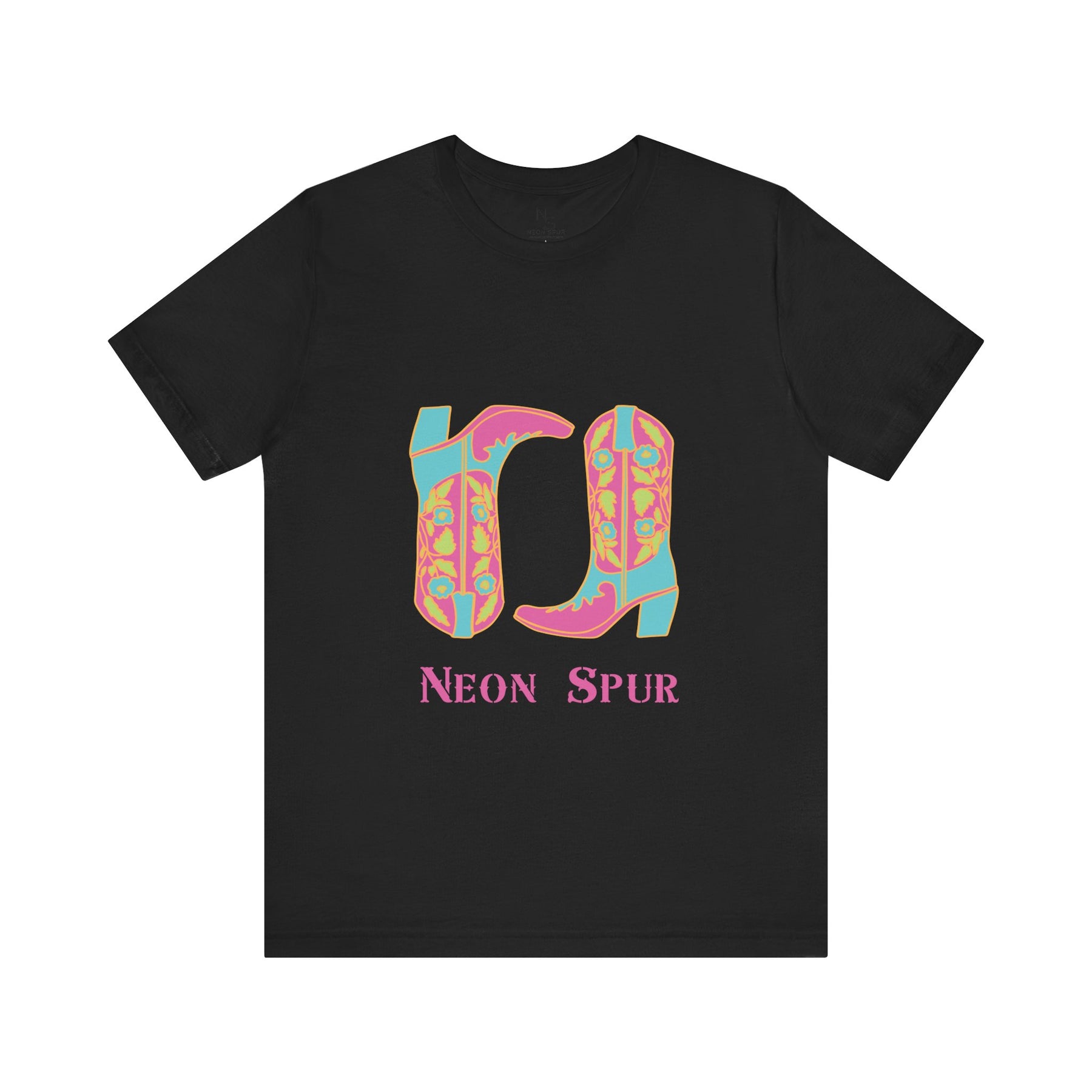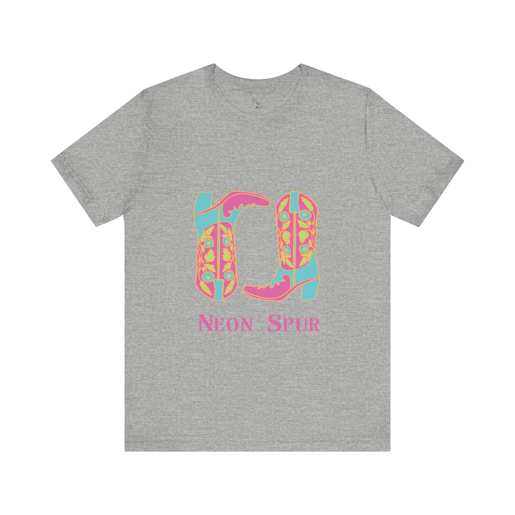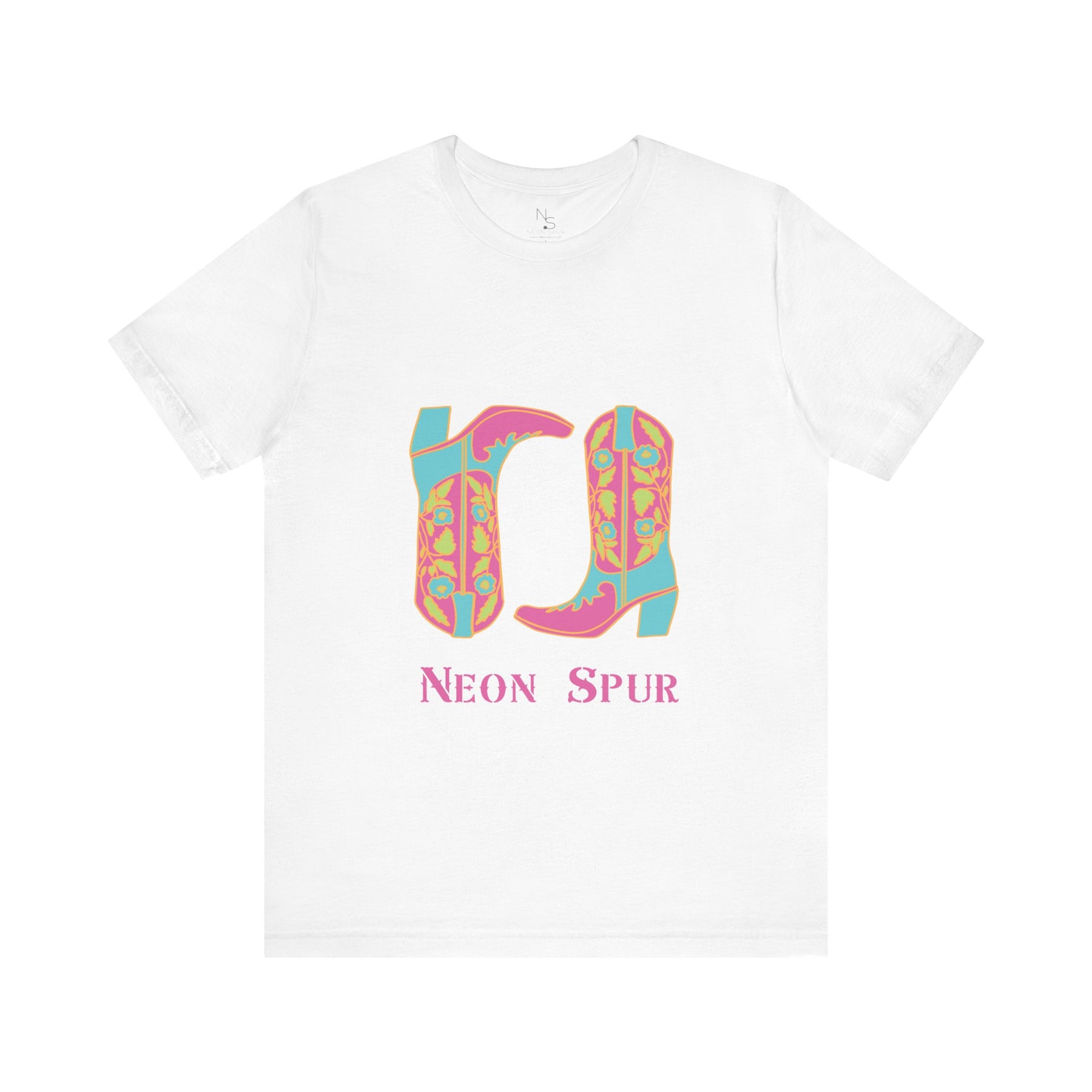 Y’all, saddle up and step out in style with our Neon Boots Jersey Short Sleeve Tee! This here tee’s got a graphic that’ll make any cowgirl’s heart skip a beat—two vividly colored cowgirl boots strutting their stuff with the Neon Spur logo shining bright. Made from 100% Airlume combed and ring-spun cotton, this shirt’s as soft and comfortable as a trusty old pair of boots.