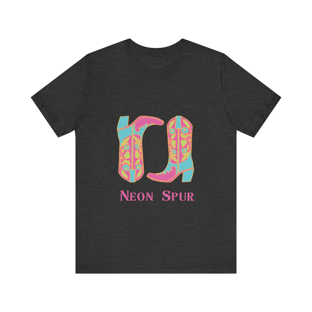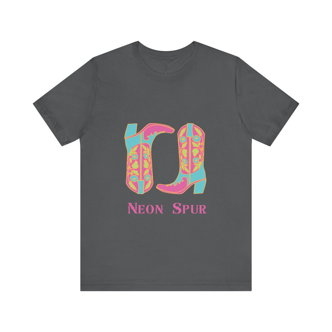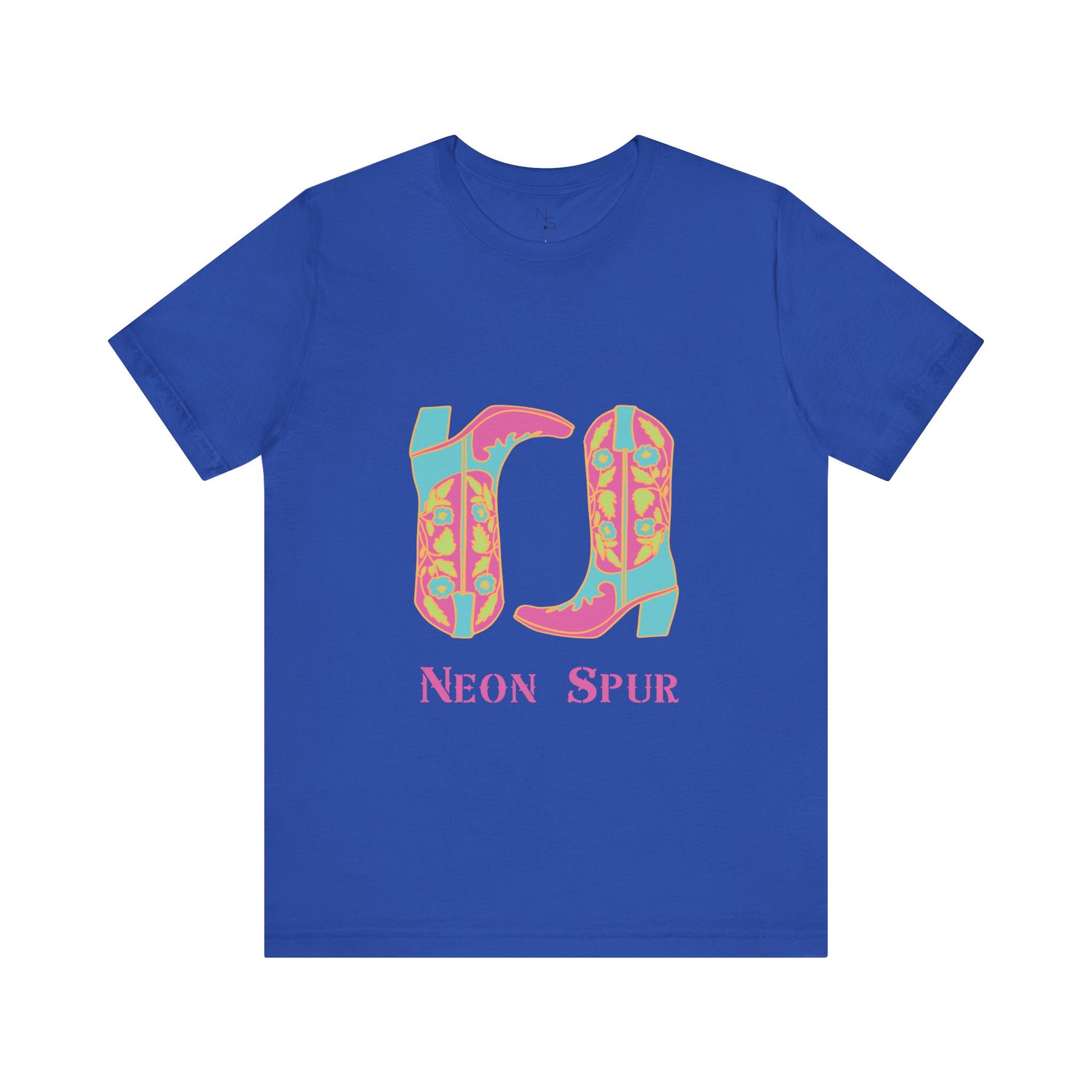 Y’all, saddle up and step out in style with our Neon Boots Jersey Short Sleeve Tee! This here tee’s got a graphic that’ll make any cowgirl’s heart skip a beat—two vividly colored cowgirl boots strutting their stuff with the Neon Spur logo shining bright. Made from 100% Airlume combed and ring-spun cotton, this shirt’s as soft and comfortable as a trusty old pair of boots.