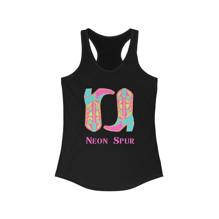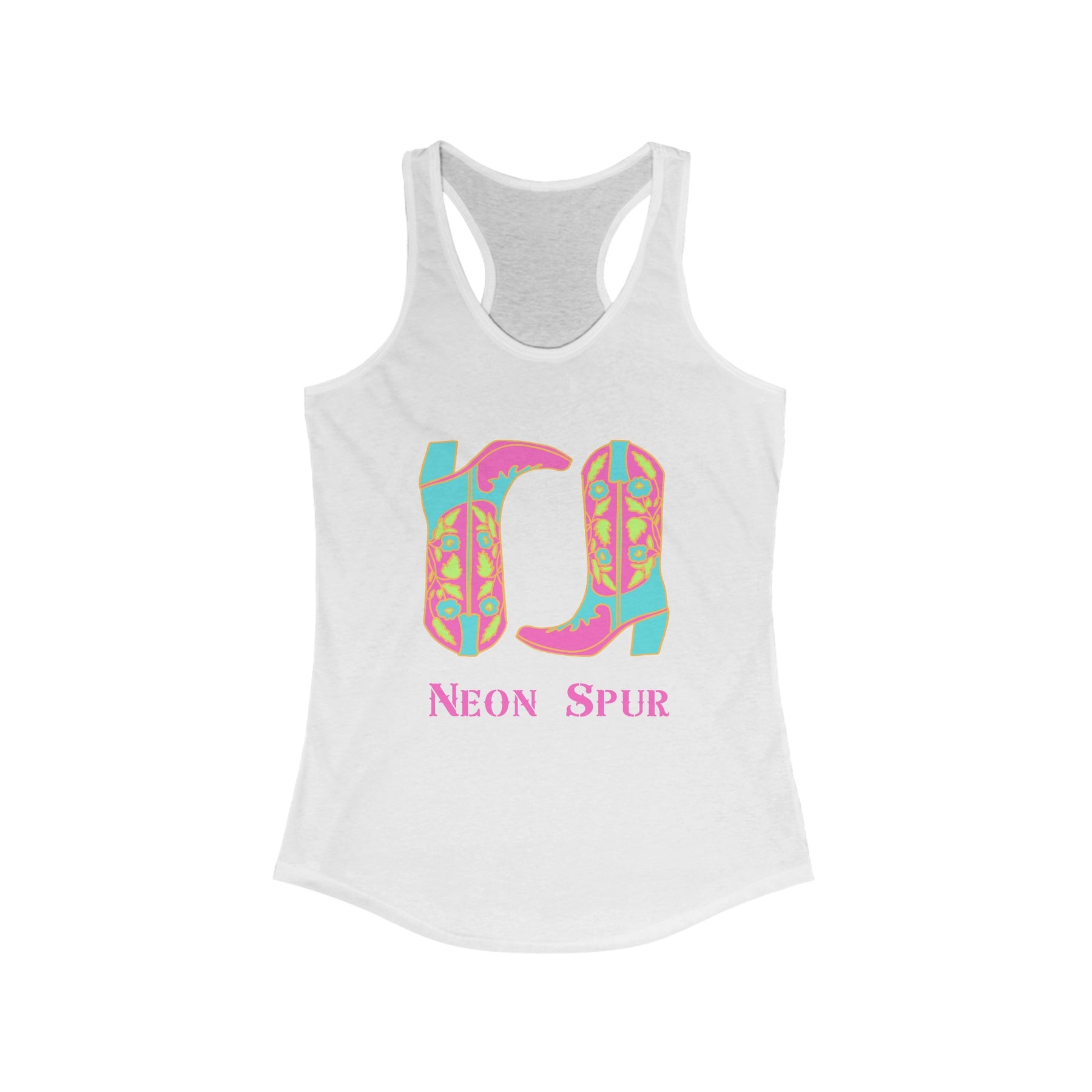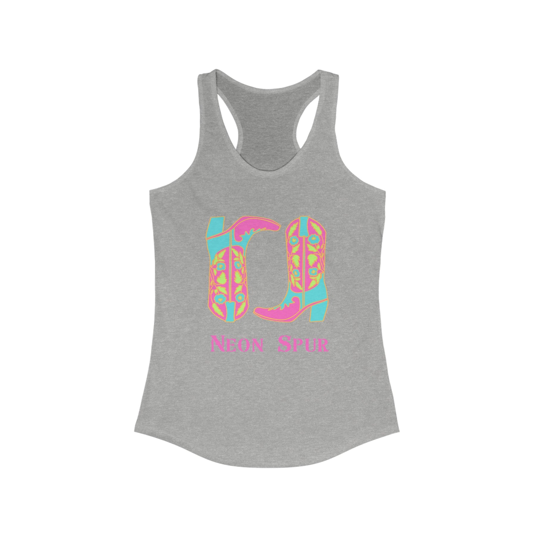 Yeehaw, cowgirl! Get ready to kick up some dust in our Neon Boots Racerback Tank. This ain't your ordinary top—it's as sassy as a two-step and twice as bright! With a slim fit that hugs your curves just right, this tank is perfect for showin' off those hard-earned muscles. The front's got a pair of wild, colorful cowgirl boots that'll have folks turnin' heads faster than a lasso at a rodeo. Made with extra light fabric, it's breezy enough for those hot summer days, whether you're ridin' the range or just sittin' pretty at the saloon. Giddy up and grab yours—this tank's ready to ride!