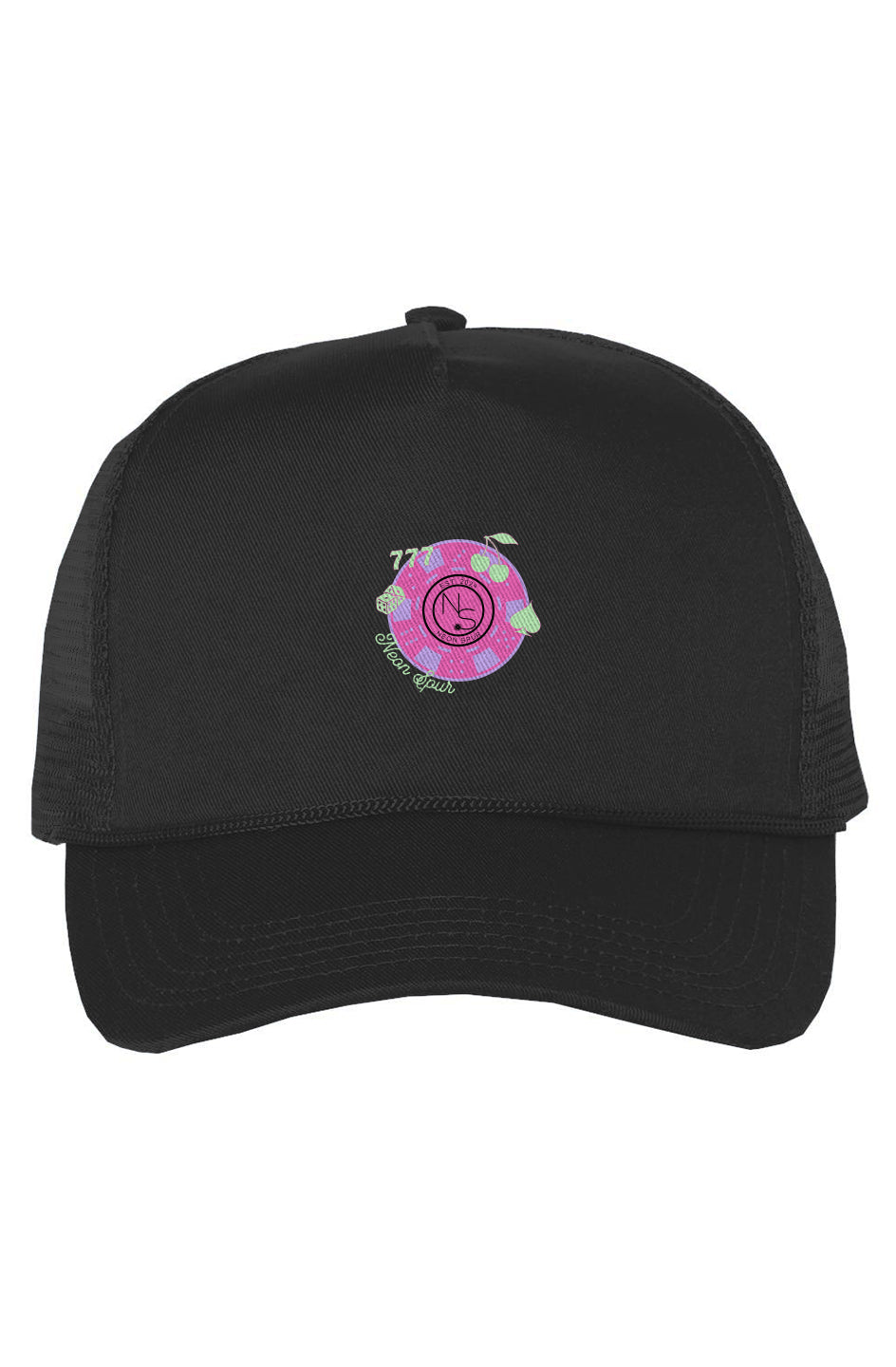 **Saddle up and ride in style with the Poker Chip Neon Spur Five-Panel Trucker Cap, built for rodeo-ready comfort and flair.**
