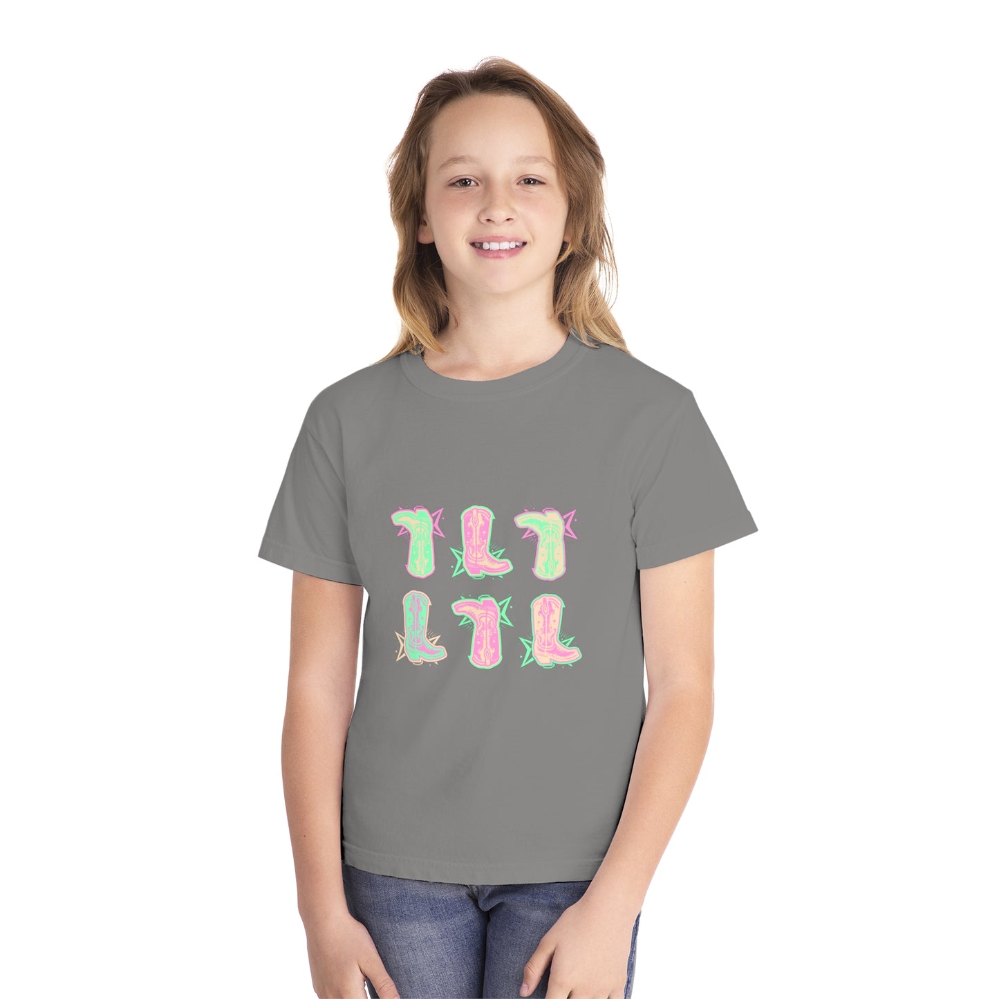 Yo, check it out! This Youth Midweight Tee is the real deal for your little one’s wild days. Rockin' a rad pastel boot graphic across the front, it’s perfect for any kid who’s always on the move. Crafted from 100% combed ringspun cotton, this tee is soft as a cloud and tough enough to keep up with all the action, whether they're hitting the books or hitting the playground. The medium weight fabric keeps it cozy but not bulky, and the classic fit ensures it stays comfy from sunrise to sunset. Plus, it’s soft-washed and garment-dyed for that extra chill vibe. A must-have for every kid’s wardrobe!
