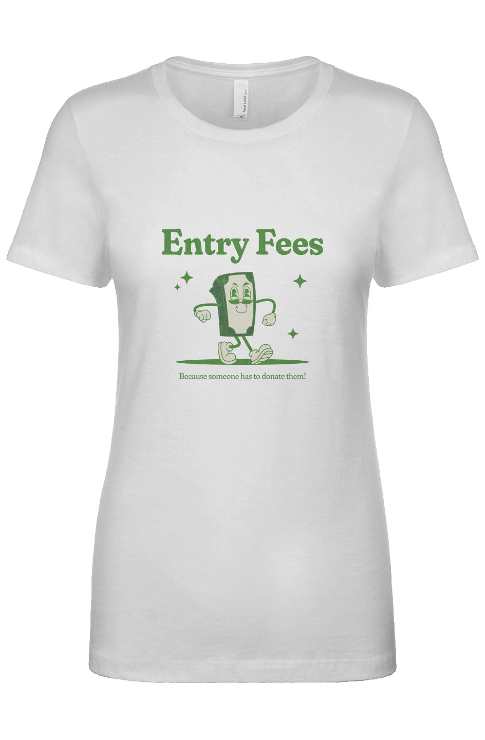 Kick up some dust and let 'em know you’re ridin’ for the prize with the Entry Fees Women's Boyfriend Style Tee! This cheeky tee shows money struttin’ off like it owns the place, paired with the sassy slogan, ‘Entry Fees – because someone has to donate them!’ A playful nod to all the cowgirls chasing that barrel racing dream, this tee is made from strong, smooth fabric built to keep up with your wild ride. Whether you’re haulin’ to the next jackpot or just wranglin’ up some laughs, this shirt’s got you covered in classic Neon Spur style!