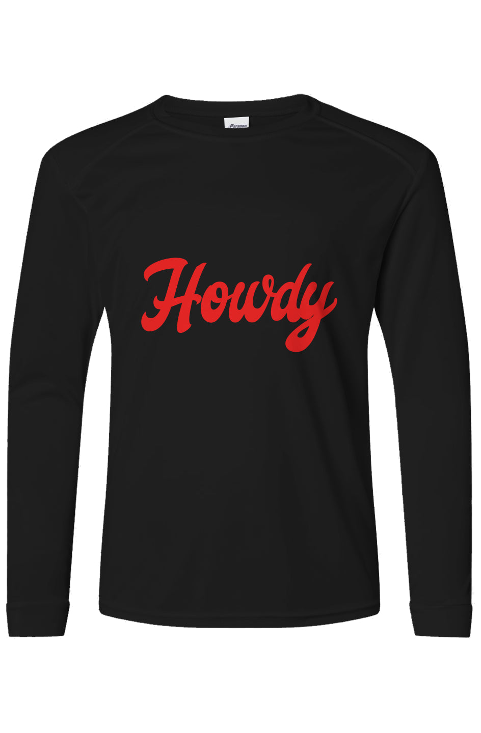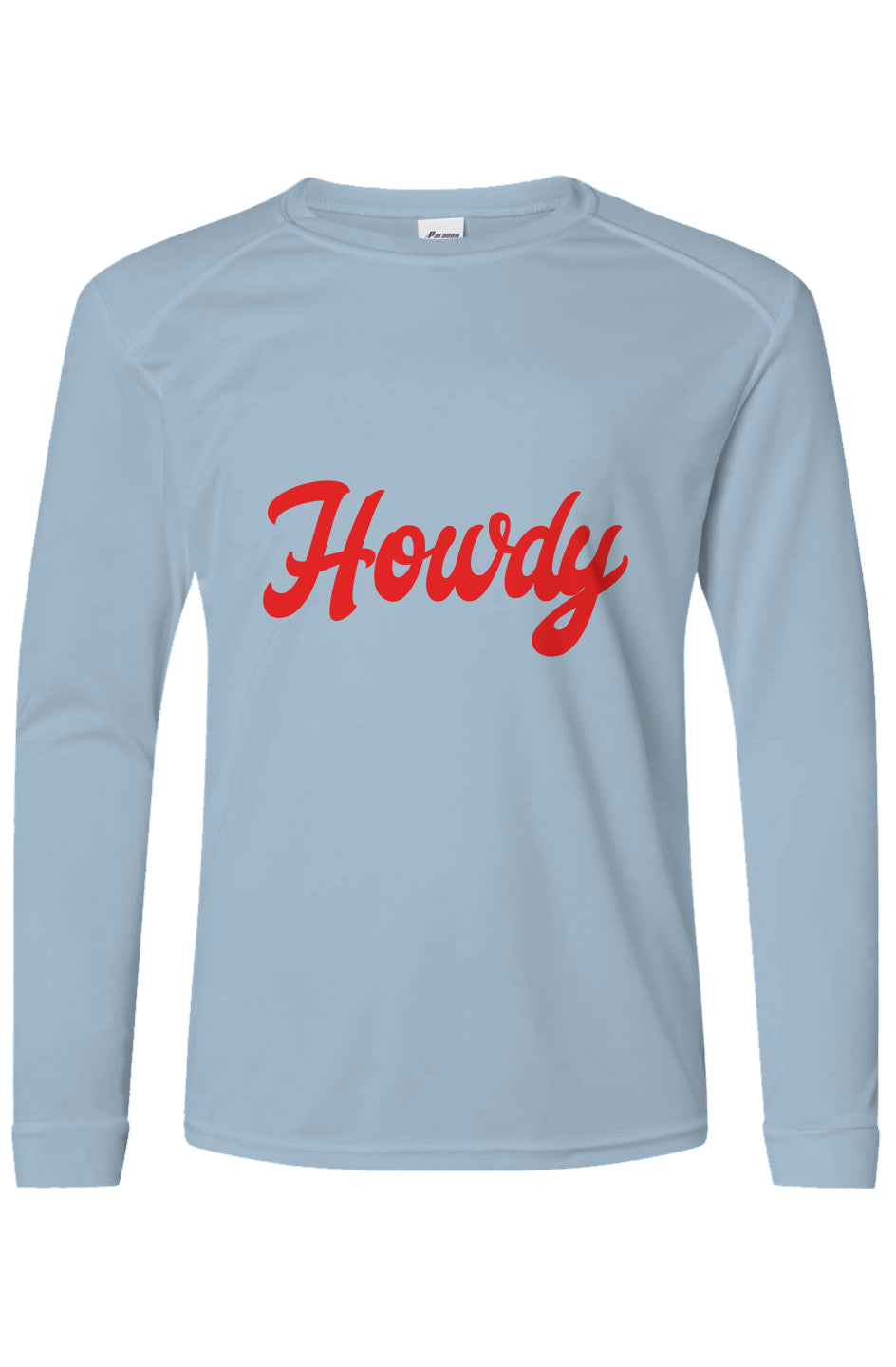 Elevate your child's wardrobe with the Howdy Youth Islander Long Sleeve T-Shirt, a standout piece designed for the young adventurer. Featuring a vibrant red "Howdy" graphic on the front, this shirt combines style and function seamlessly. Crafted with Paragon Youth's innovative performance fabric, it delivers top-notch breathability, moisture-wicking properties, and a fit that moves with your child, ensuring comfort during any activity.