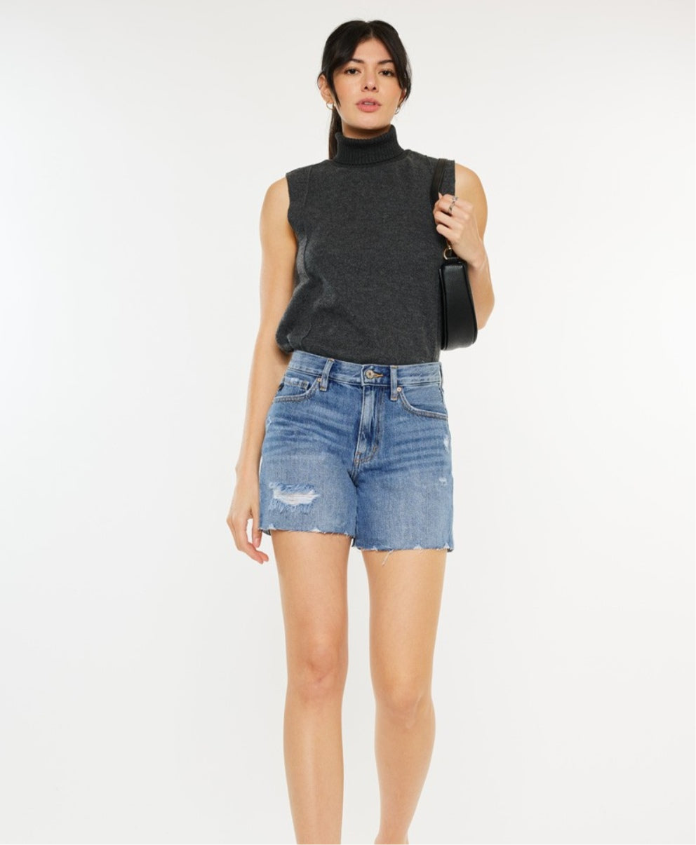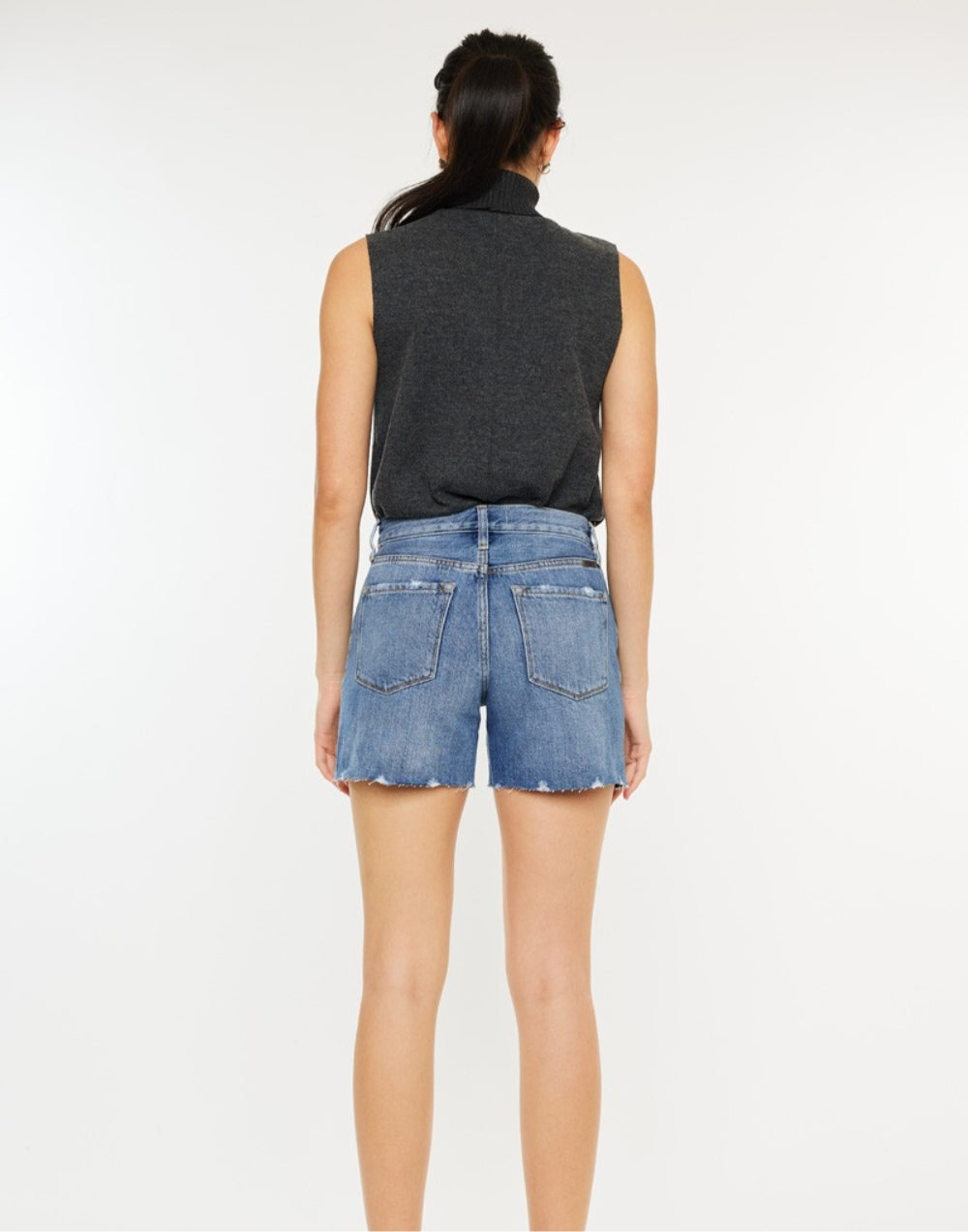 The distressed high-rise denim shorts are stylish and functional with pockets. Wear it with a simple T-shirt or short-sleeved shirt for a casual look. Whether you're out shopping or partying with friends, wearing these shorts will make you stylish and confident and take center stage.