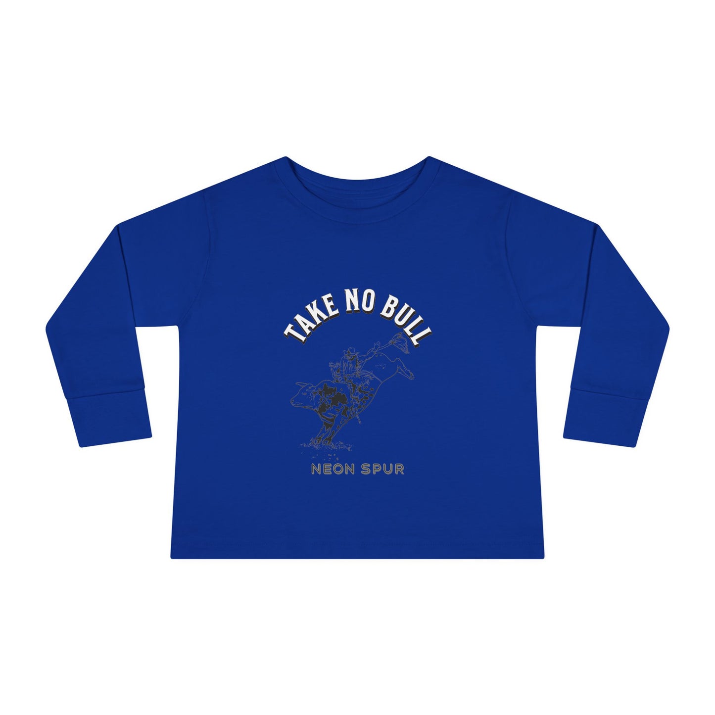 Round up the herd with the Neon Spur Take No Bull Toddler Long Sleeve Tee—fit for your little wrangler who's already learning the ropes! With a bull rider kickin’ up dust front and center, this tee ain't for the faint of heart. It's built for kiddos who stand their ground and won’t take any guff! Whether it's a day at the park, ropin' in some birthday fun, or just ridin' through the wild frontier of family gatherings, this shirt brings the grit with a playful twist.