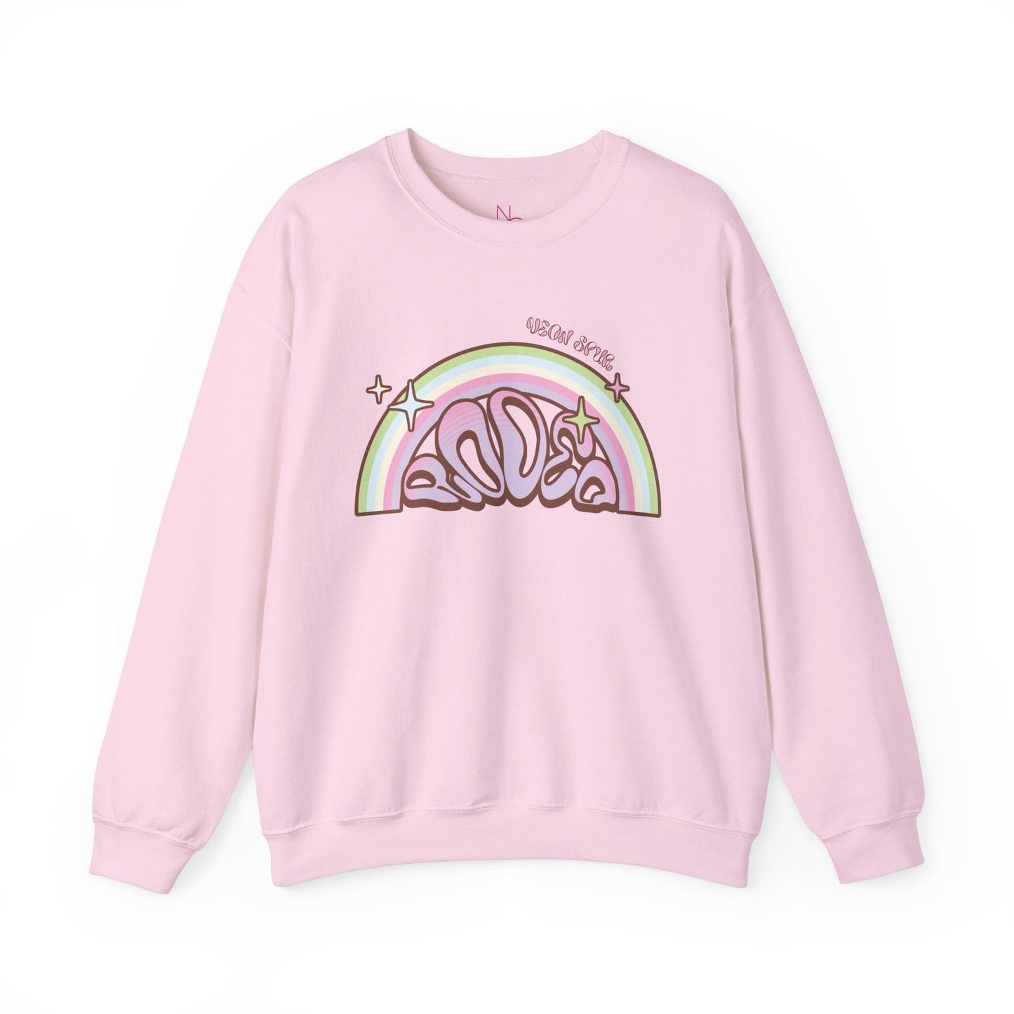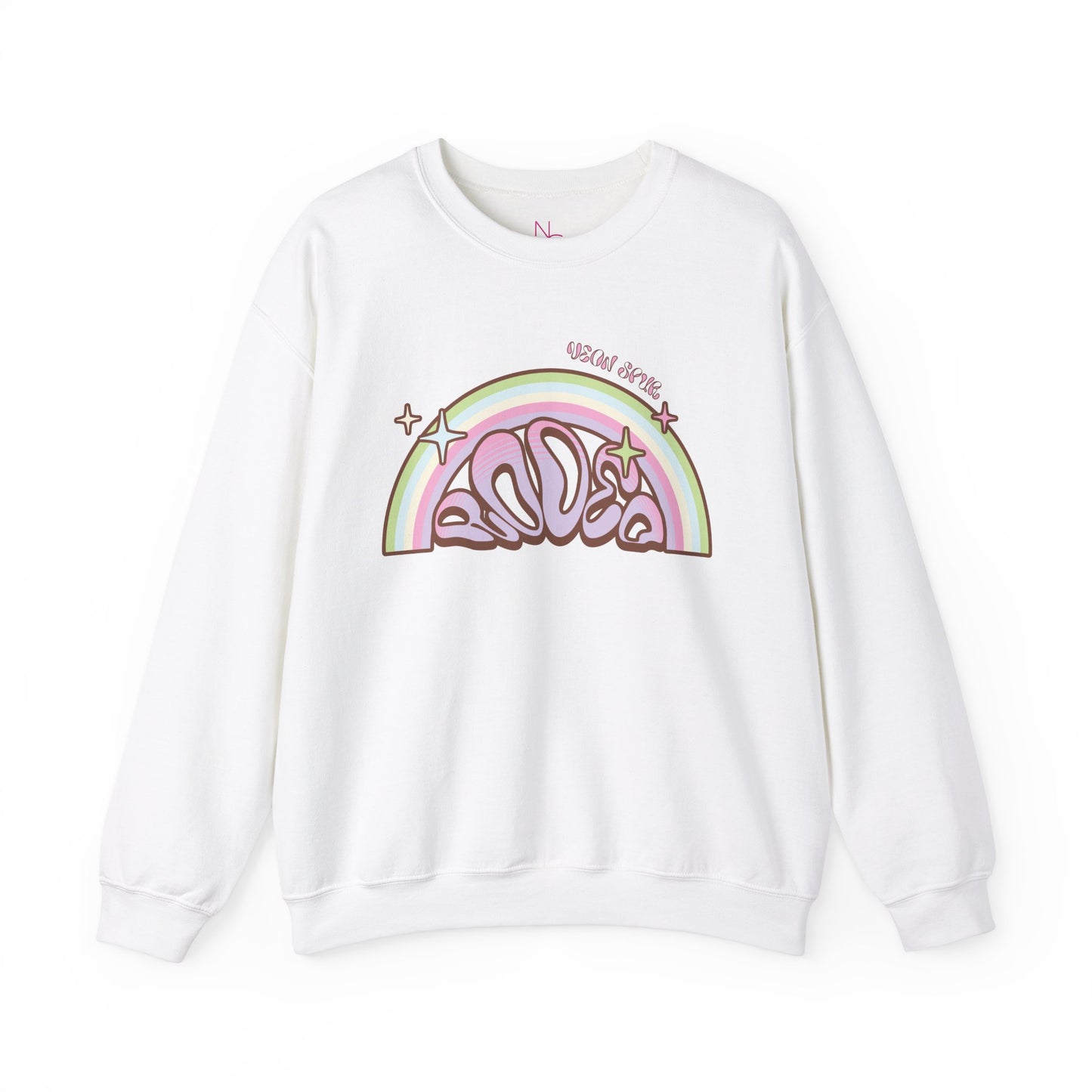 Perfect for cruisin’ the town, kickin’ back at the ranch, or just takin’ it easy while dreamin’ of open prairies. The Groovy Rainbow Rodeo Graphic Crewneck Sweatshirt is here to give your wardrobe some retro cowpoke charm!