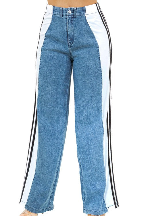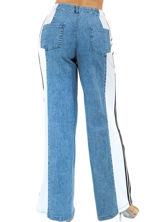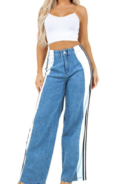 Details:  High waisted and full-length, wide leg,  stretch fabric
